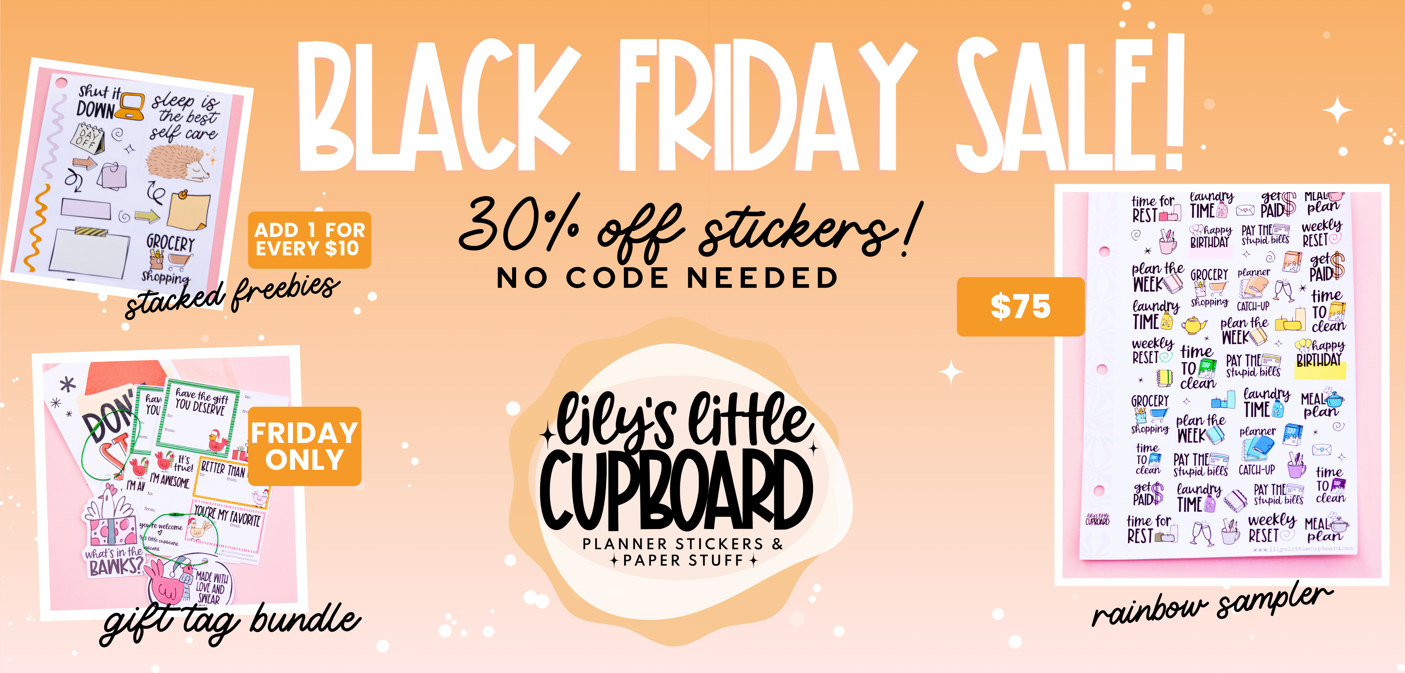 - SI love Lily’s Little Cupboard! The designs and humor draw me in, but the sticker quality is so good! That makes it easy for me to tell all my planner friends to check out the shop!