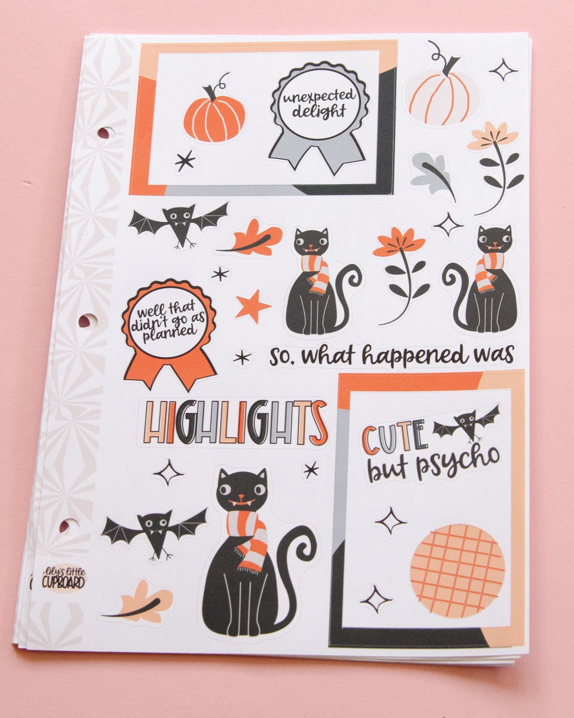 Bat Kitty Halloween Journaling Sticker Kit: Jumbo Planner Stickers