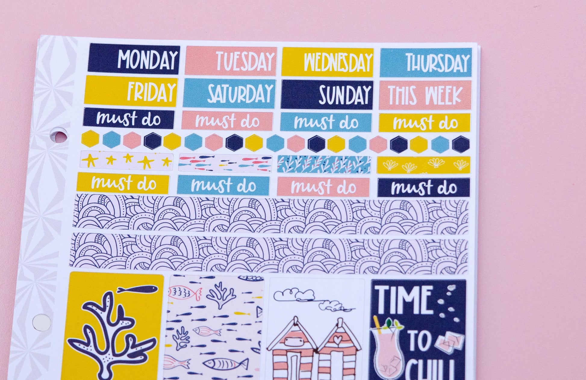 Beachy Keen Hobonichi Cousin and Other A5 Weekly Sticker Kit in | Beach Day Sticker Kit | A5 Weekly Sticker Kit | Beach Planner Cute