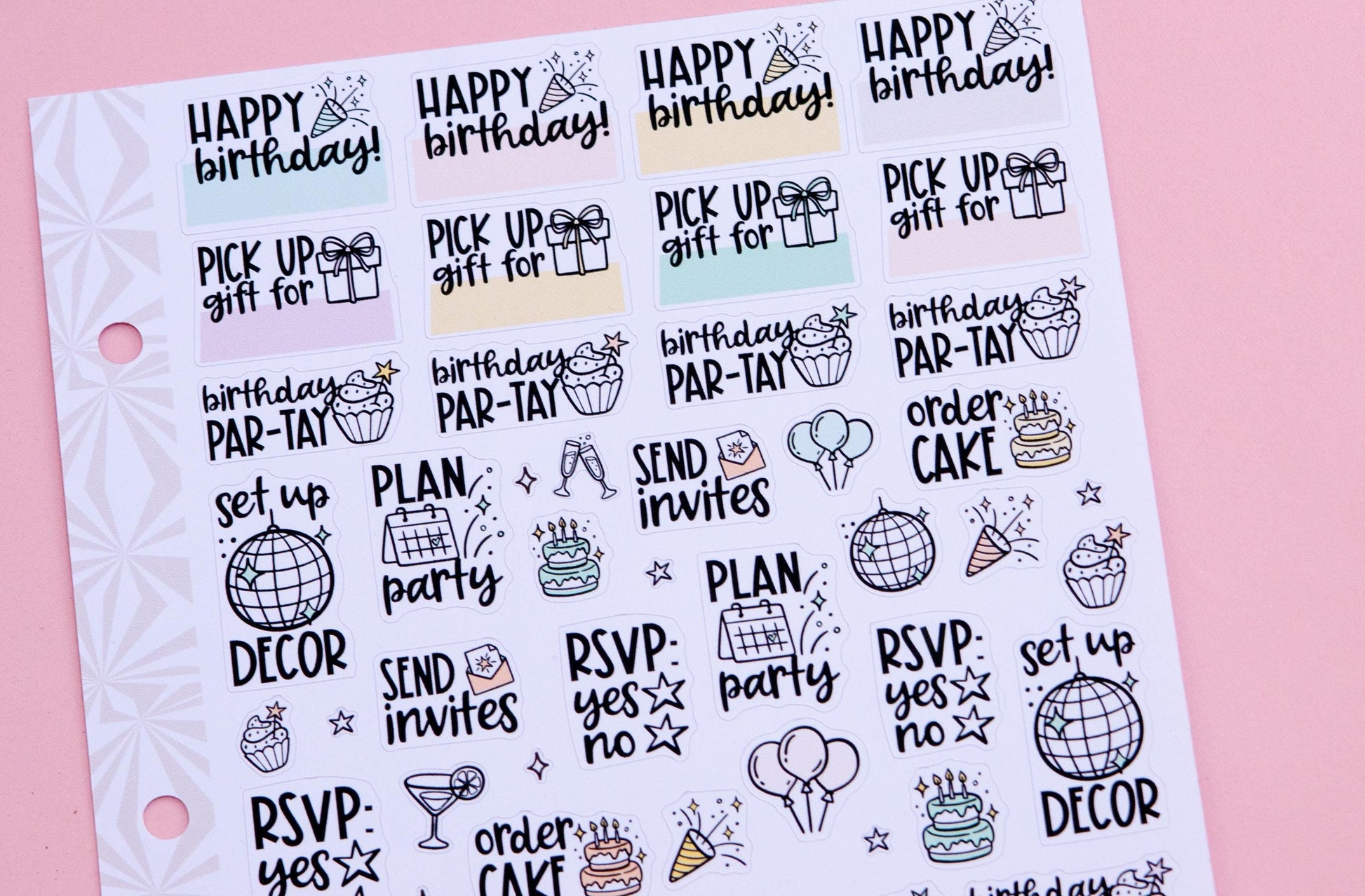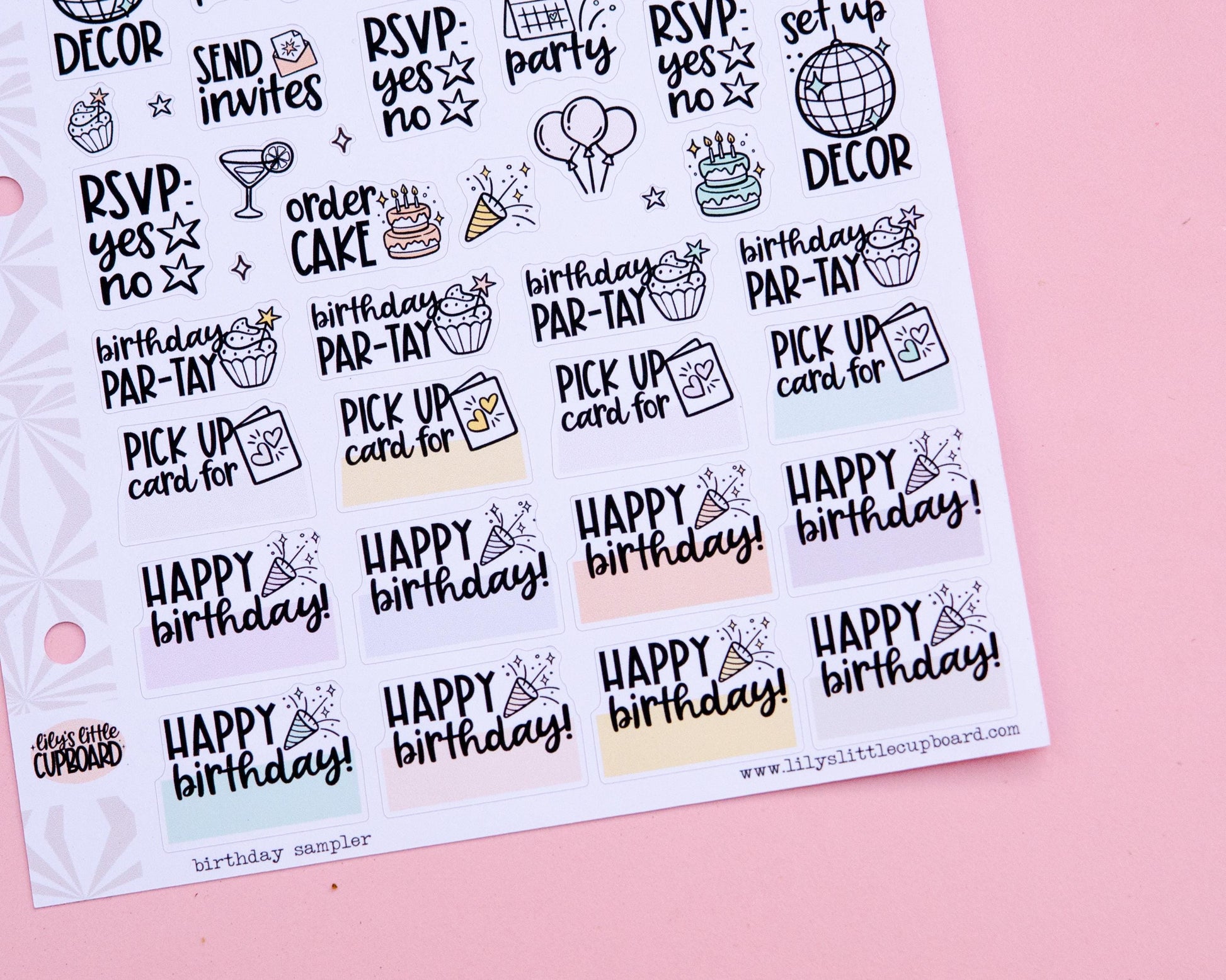Birthday Sampler Planner Stickers | Birthday Functional Organizing Projects | Functional Deco | Script | Icon | Typography