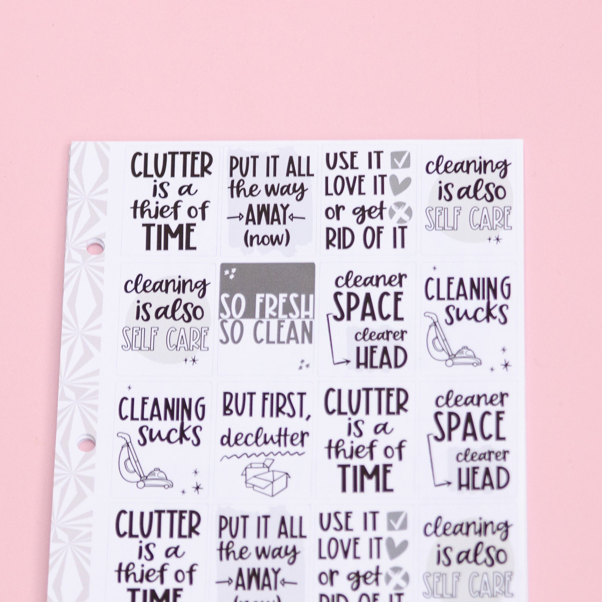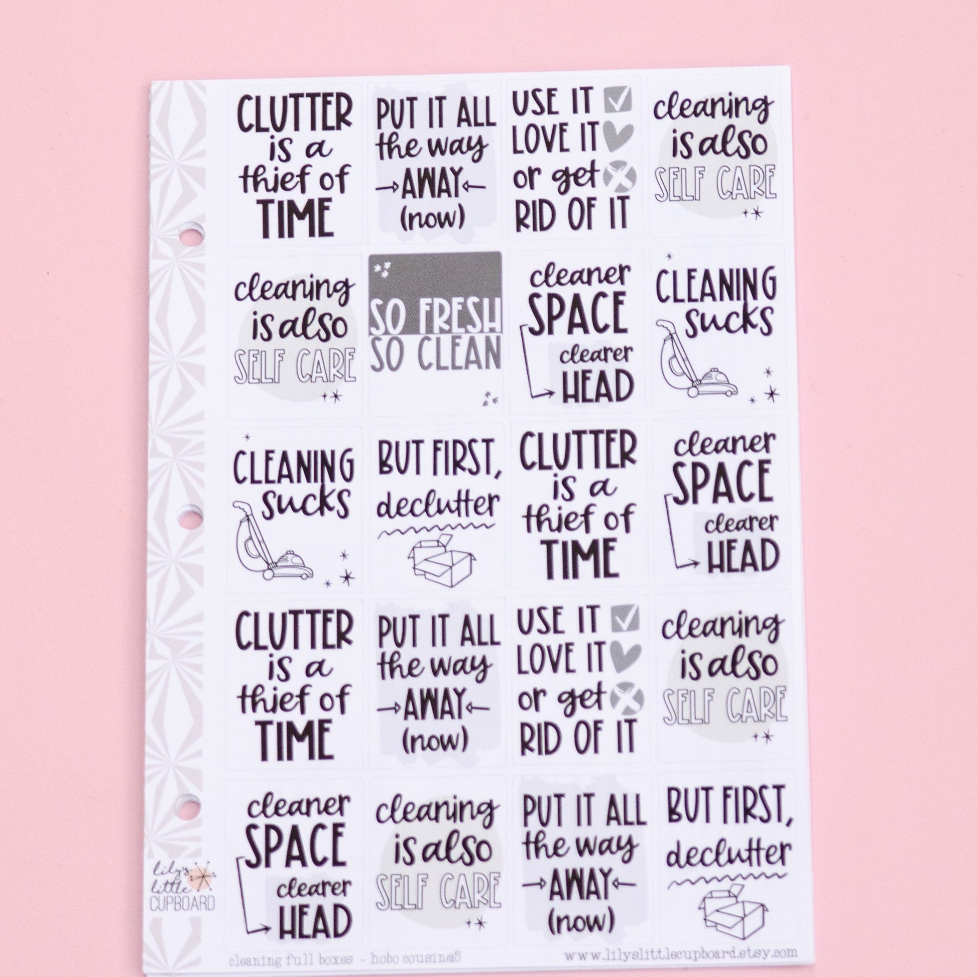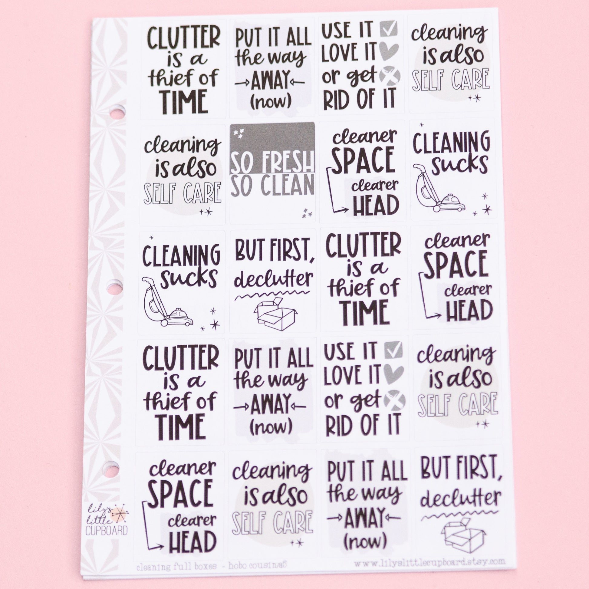 Cleaning Motivation Stickers for Smaller Planners | Hobonichi Cousin Full Box Stickers | A5 Functional Stickers |Cousin Cleaning Stickers