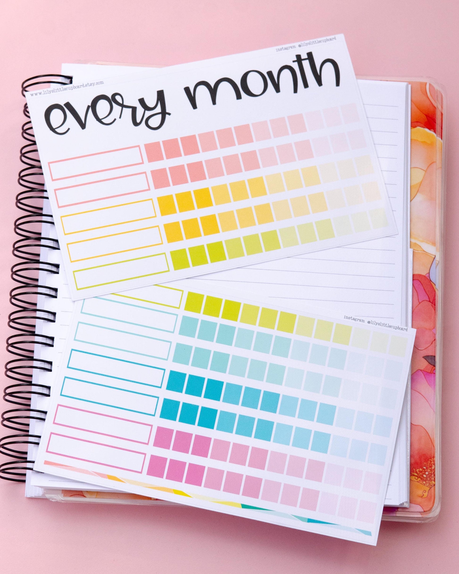 This sheet is to help you track those once-a-month, easily-forgettable tasks. Unlabeled so you can start your months whenever you need to.