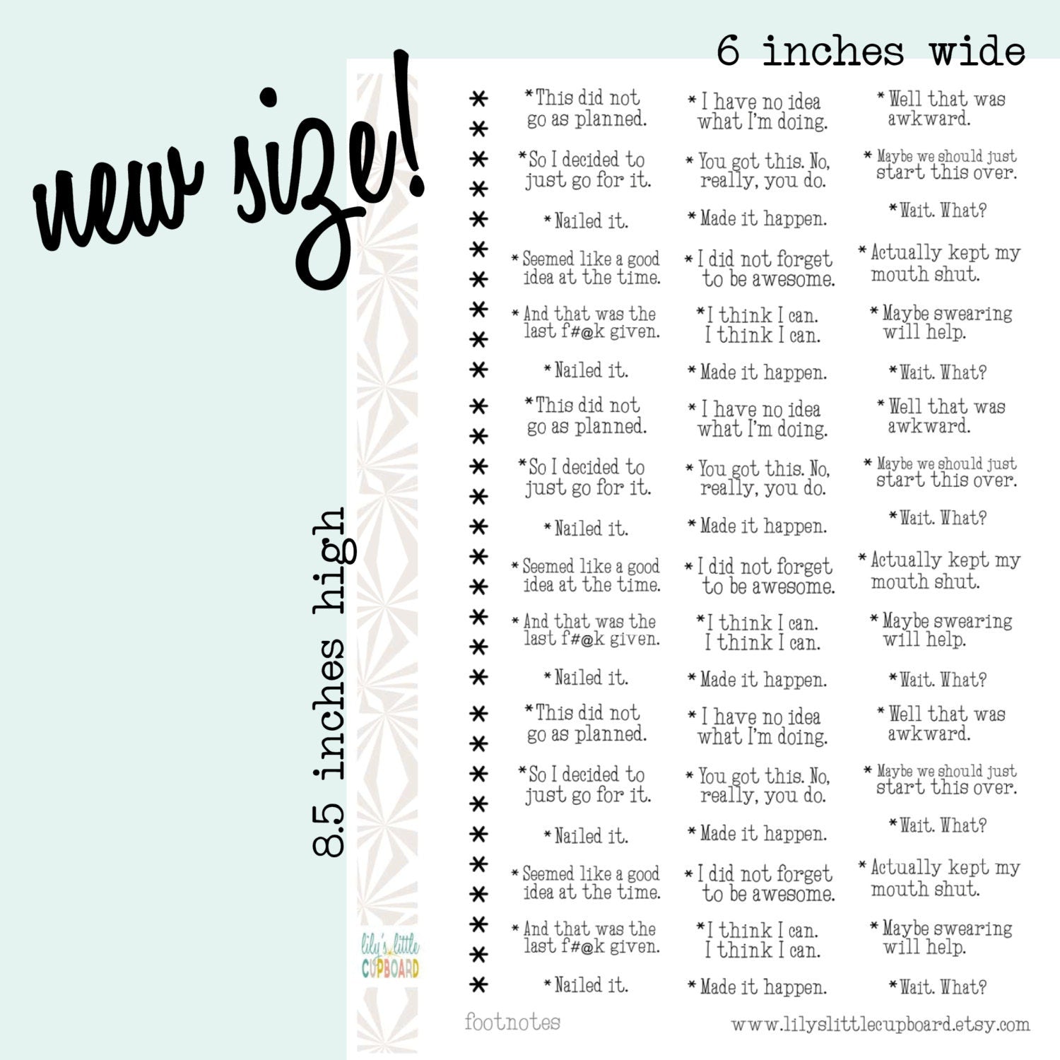 -Sticker sheet is 8.5" high by 6" wide
