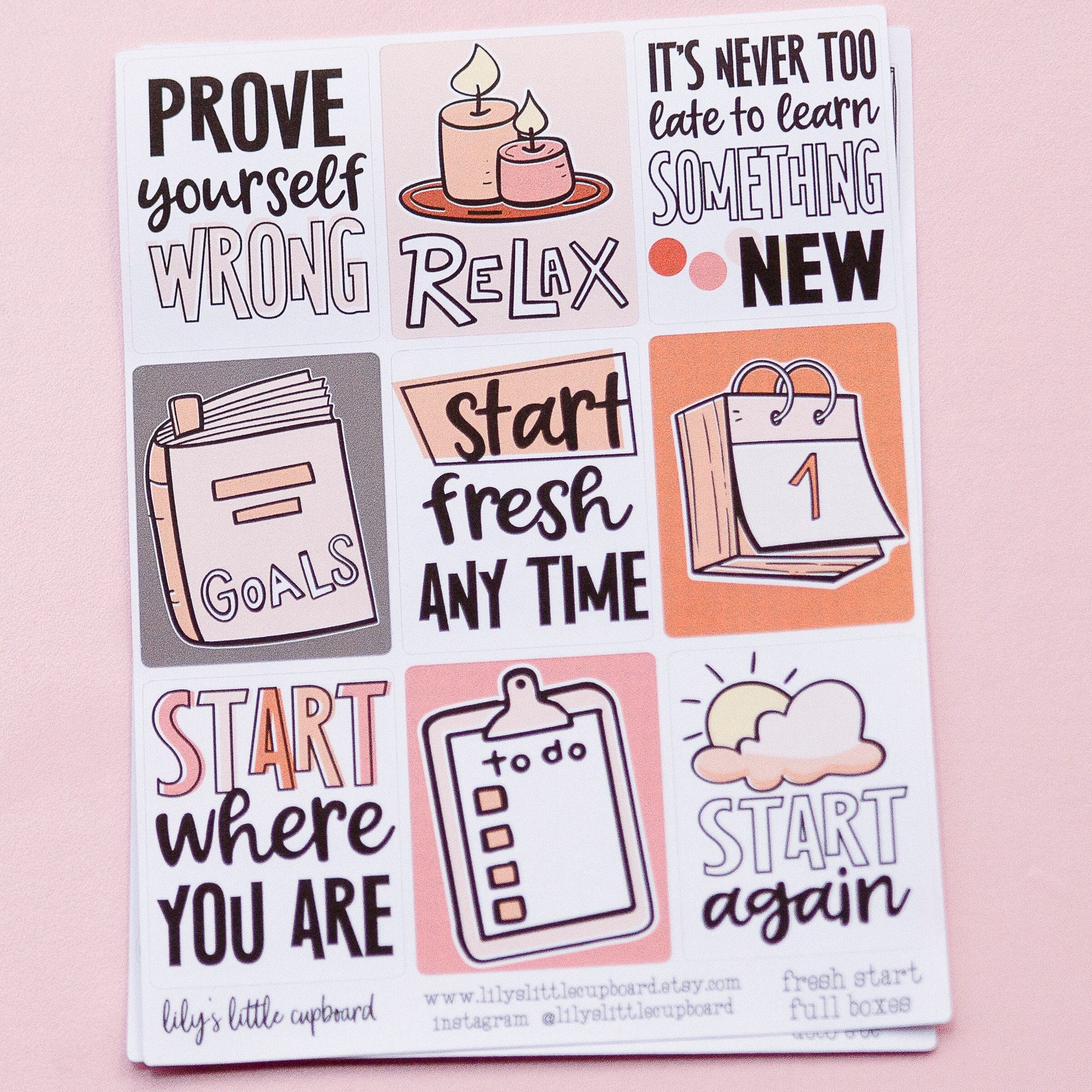 Fresh Start Full Box Planner Stickers | Restart Planner Stickers | Full Box Quote Planner Stickers | Deco Planner Stickers L_B