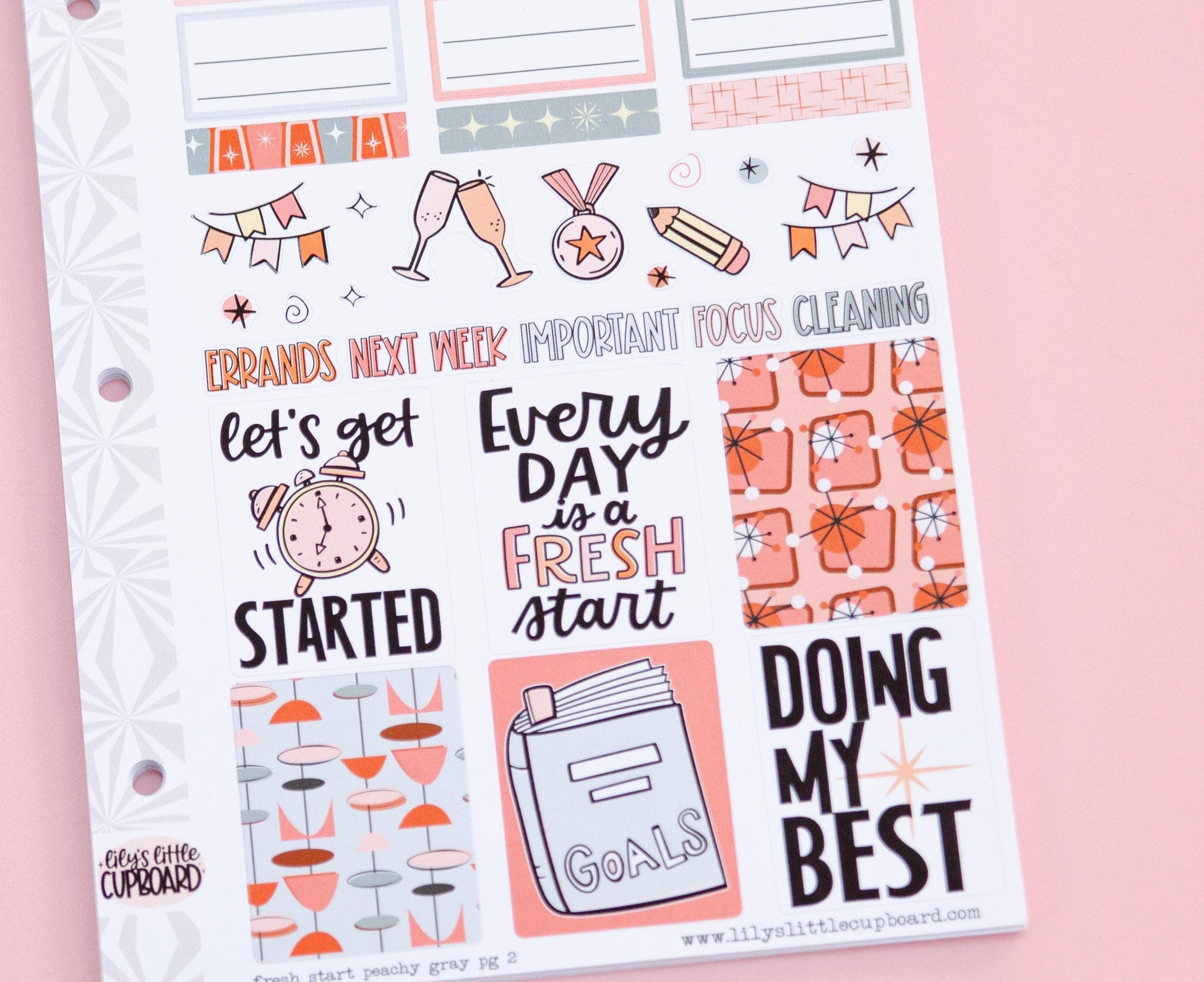 Fresh Start in Peachy Grays Vertical Weekly Sticker Kit | Standard Weekly Planner Sticker Kit | Goal Planner A la Carte Planner Kit