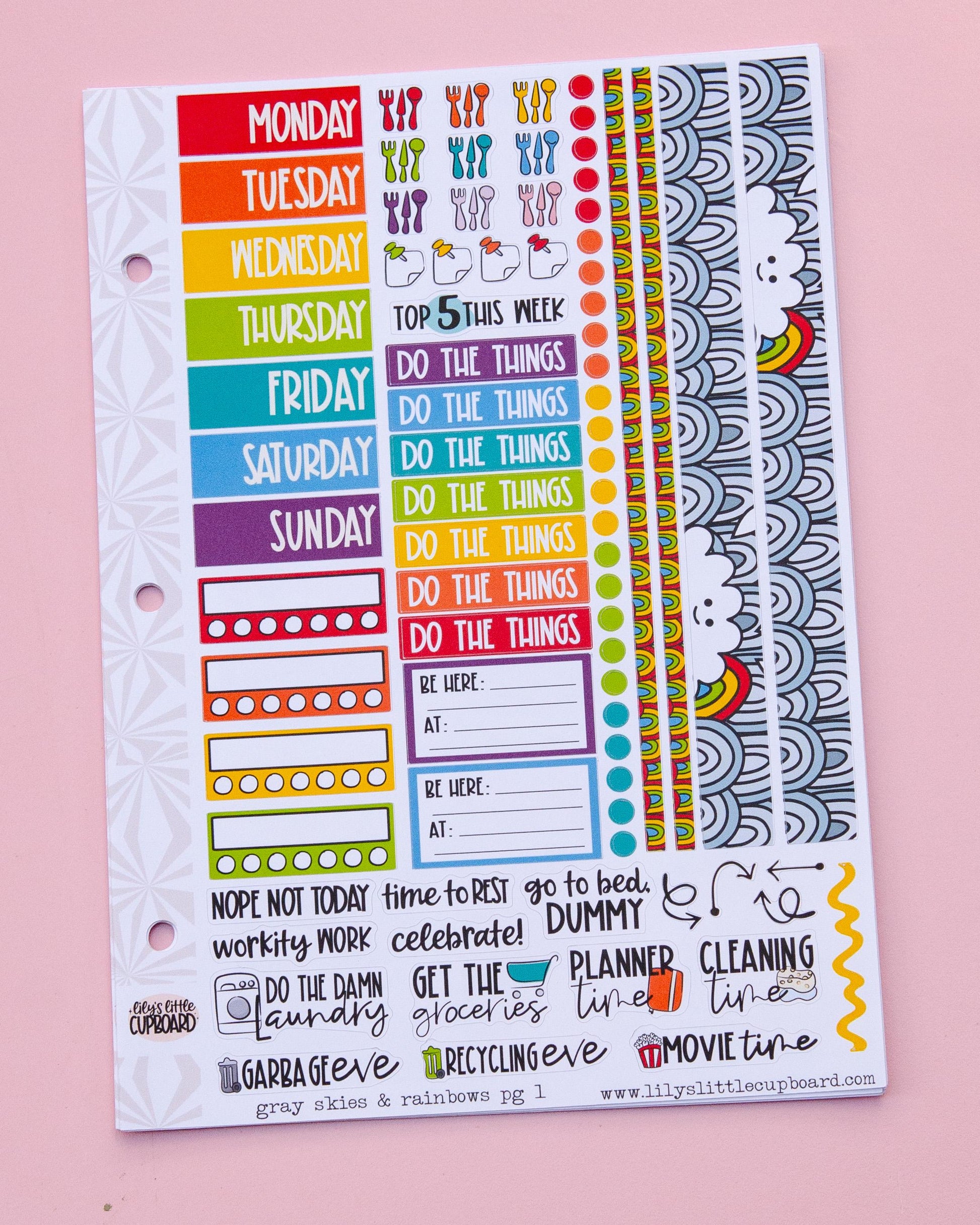 Gray Skies and Rainbows | Weekly Sticker Kit | Colorful Planner Kit | Cute Rainbow | Rainy Day Sticker Kit A la Carte Planner Kit