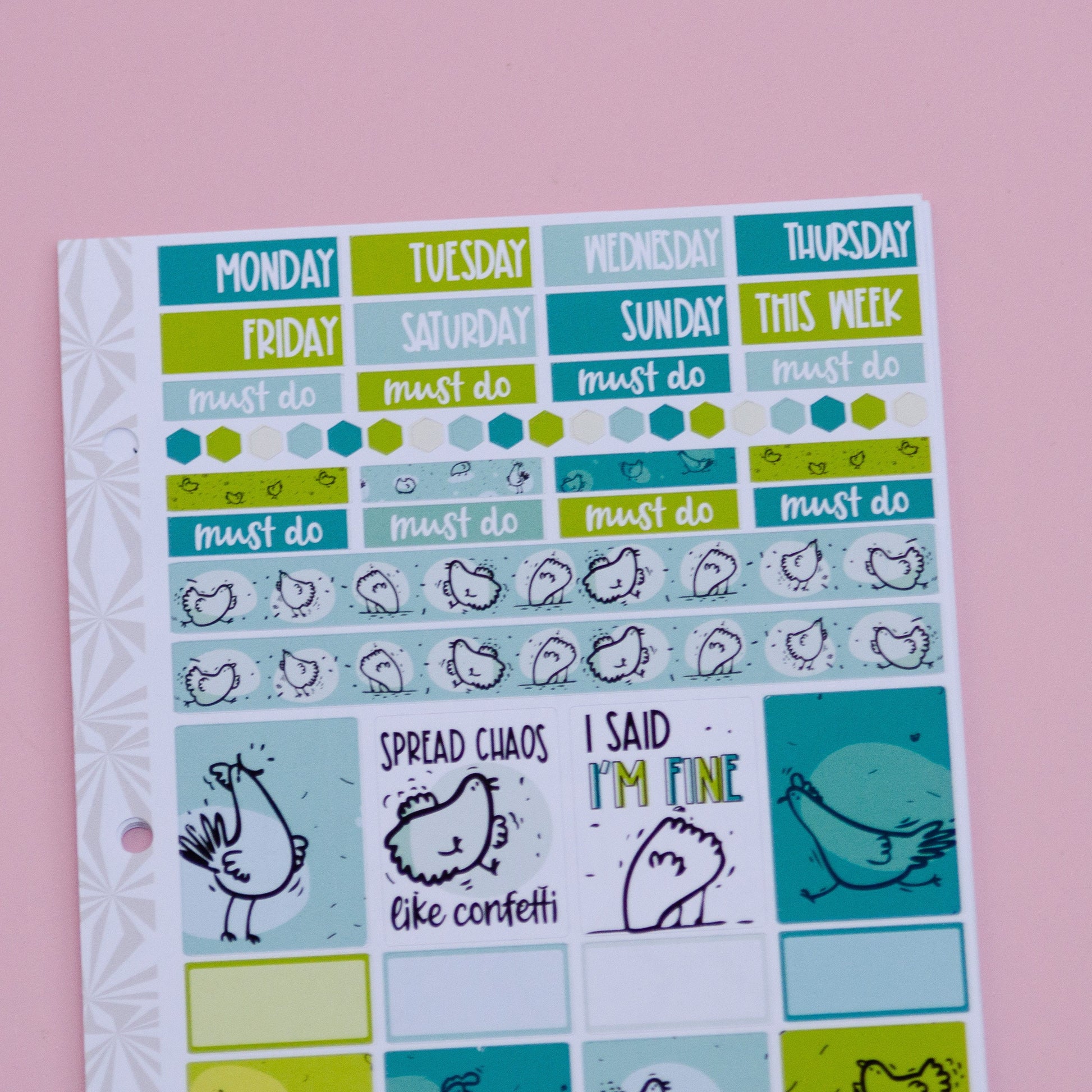 Hobonichi Cousin Weekly Sticker Kit in Chaos Chickens | Chickens Sticker Kit | A5 Weekly Planner Sticker Kit | Weekly Mini Planner Kit
