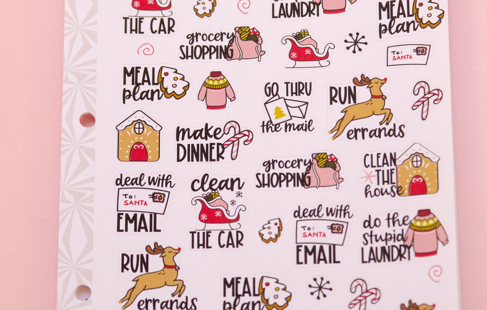 Cleaning and various chore stickers with a Christmas-y twist. Designed to add a little festive fun to your daily drudgery and also your planner.