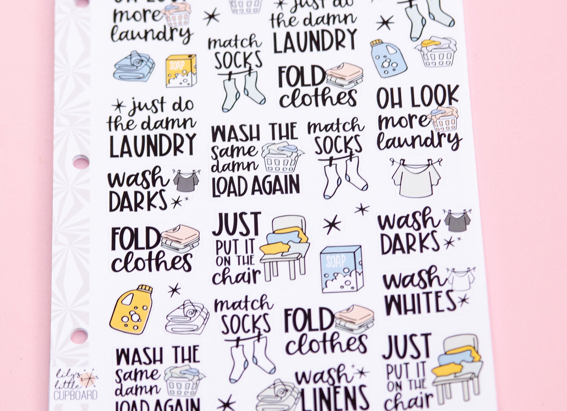 Laundry Sampler Planner Stickers | Laundry Script Stickers | Cute Laundry Stickers | Functional Cleaning| Laundry Deco Stickers