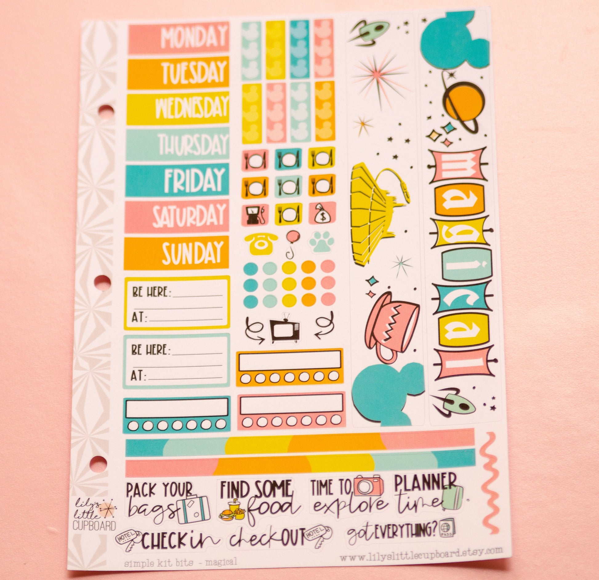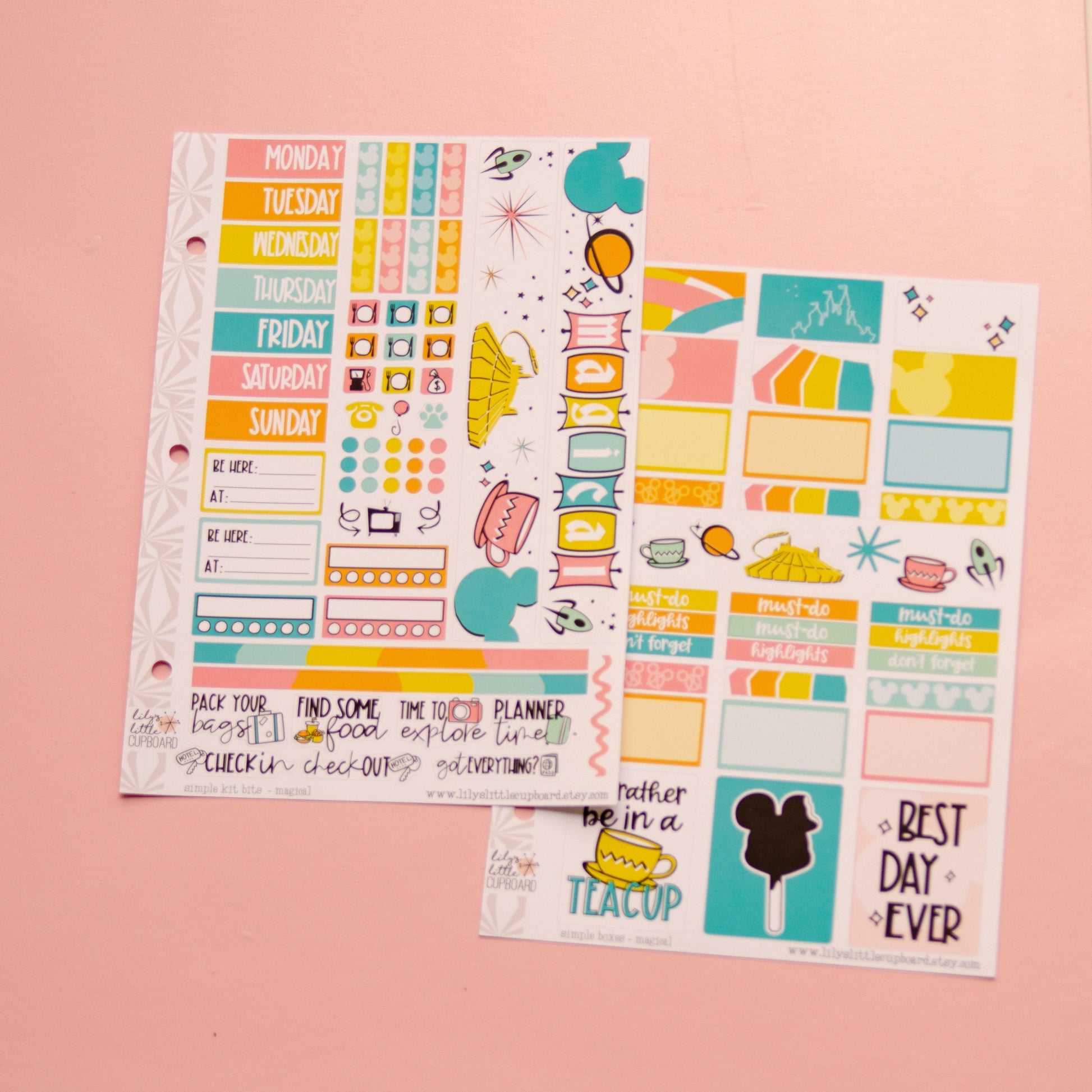 Magical Park Day in Retro Brights Weekly Travel Planner Kit | Planner Sticker Kit | Two-Page Set | A la Carte s | Weekly Planner Kit