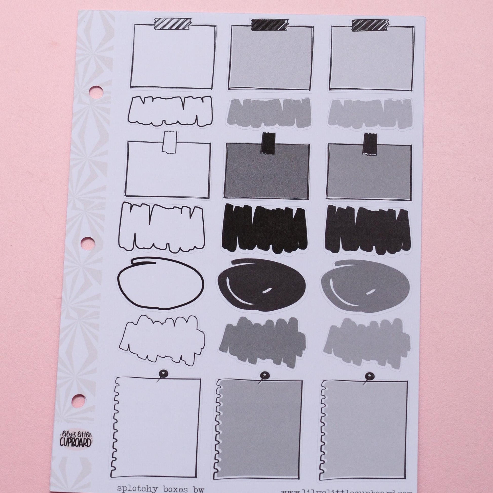 -21 Splots, scribbles, boxes, and little notepad functional stickers as shown