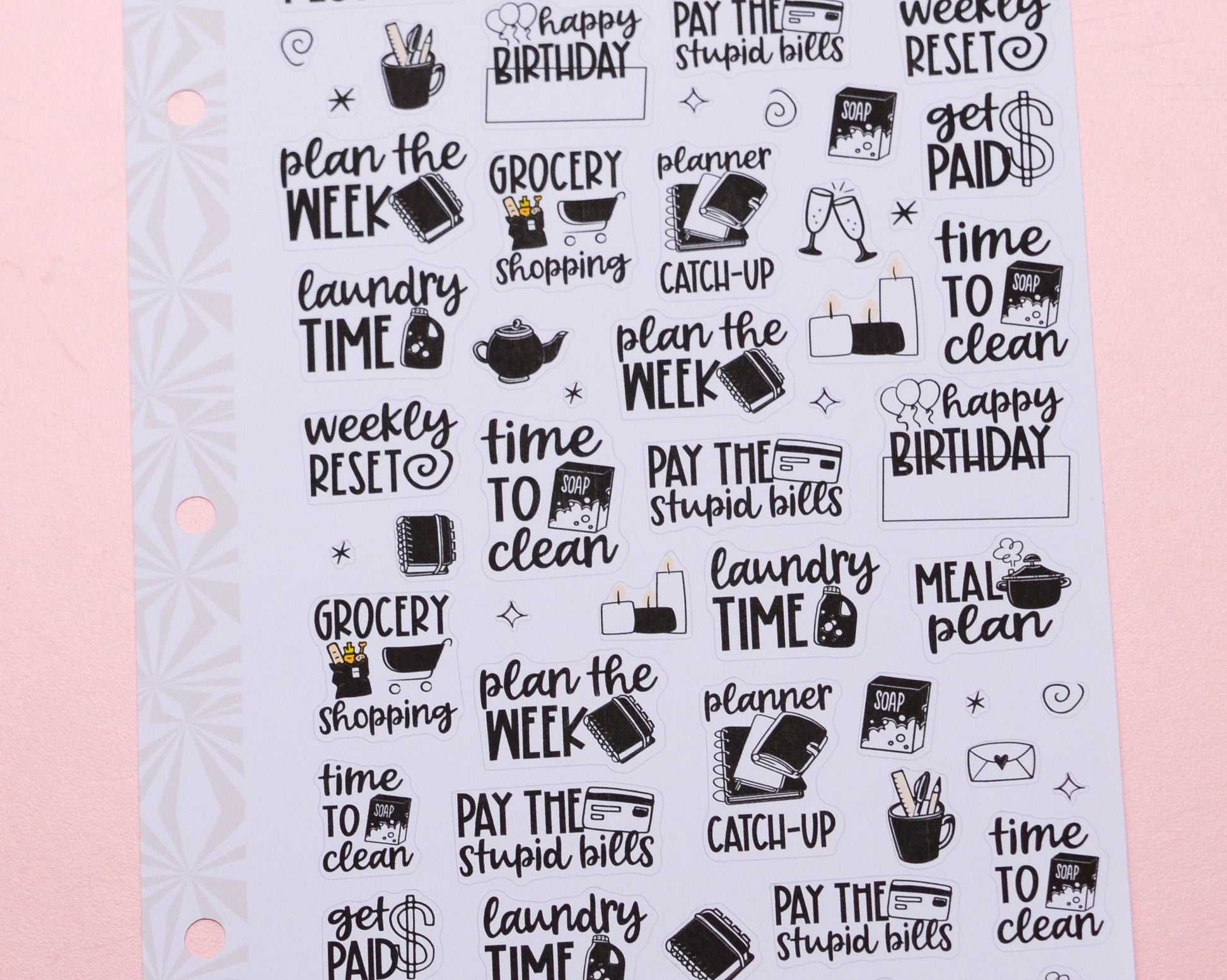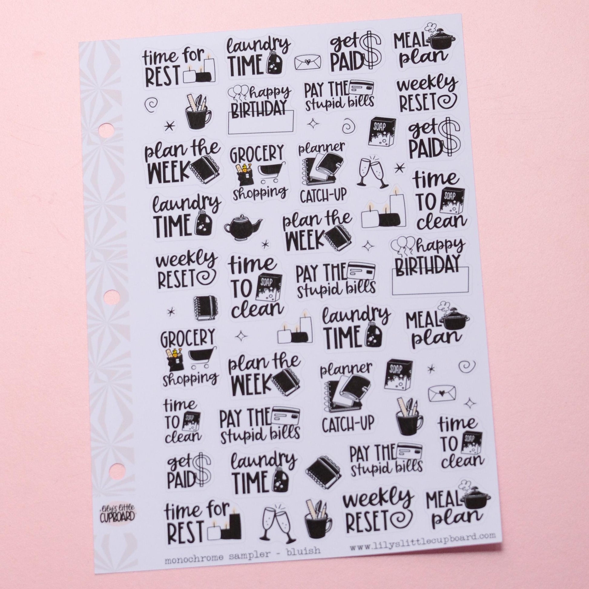 Monochrome Collection Black and White | Functional Planner Stickers | Typography Scripts Planner Stickers | Weekly Planner Sticker Kit