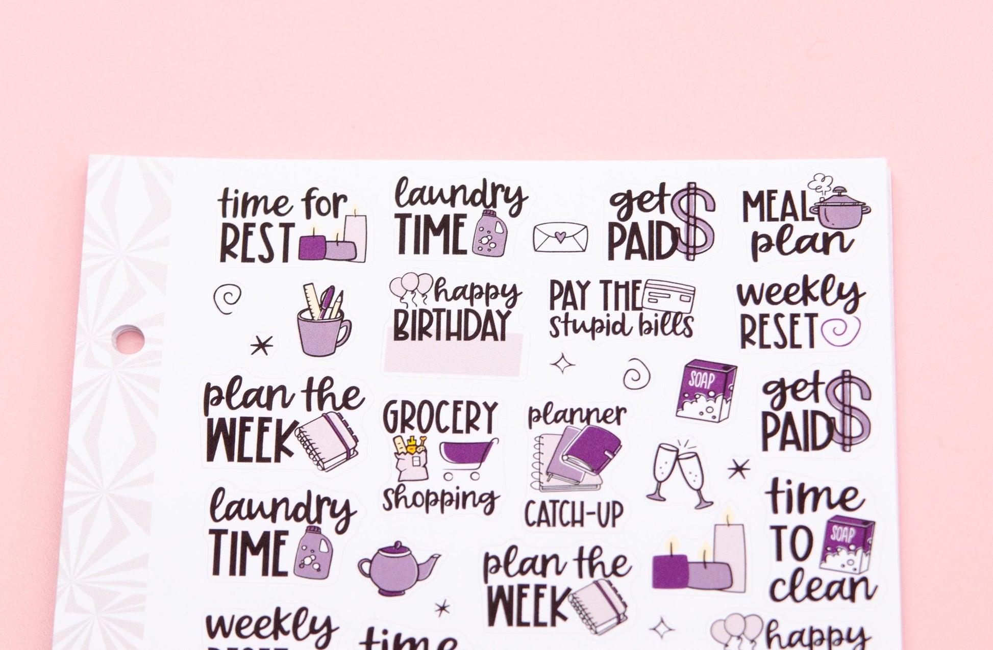Monochrome Collection in Purply| Functional Planner Stickers | Typography Scripts Planner Stickers | Weekly Planner Sticker Kit