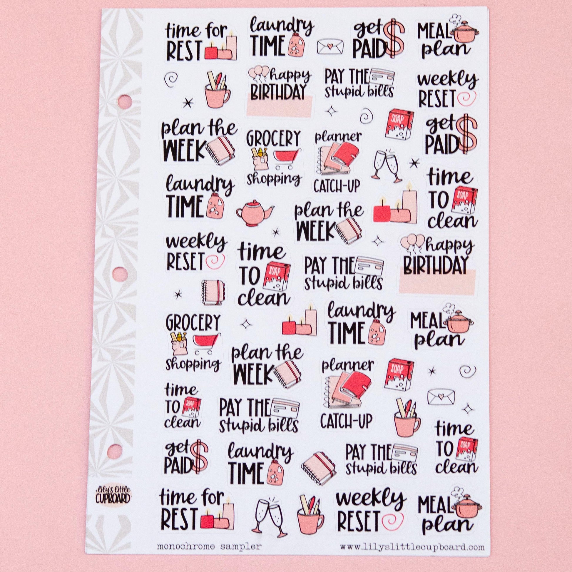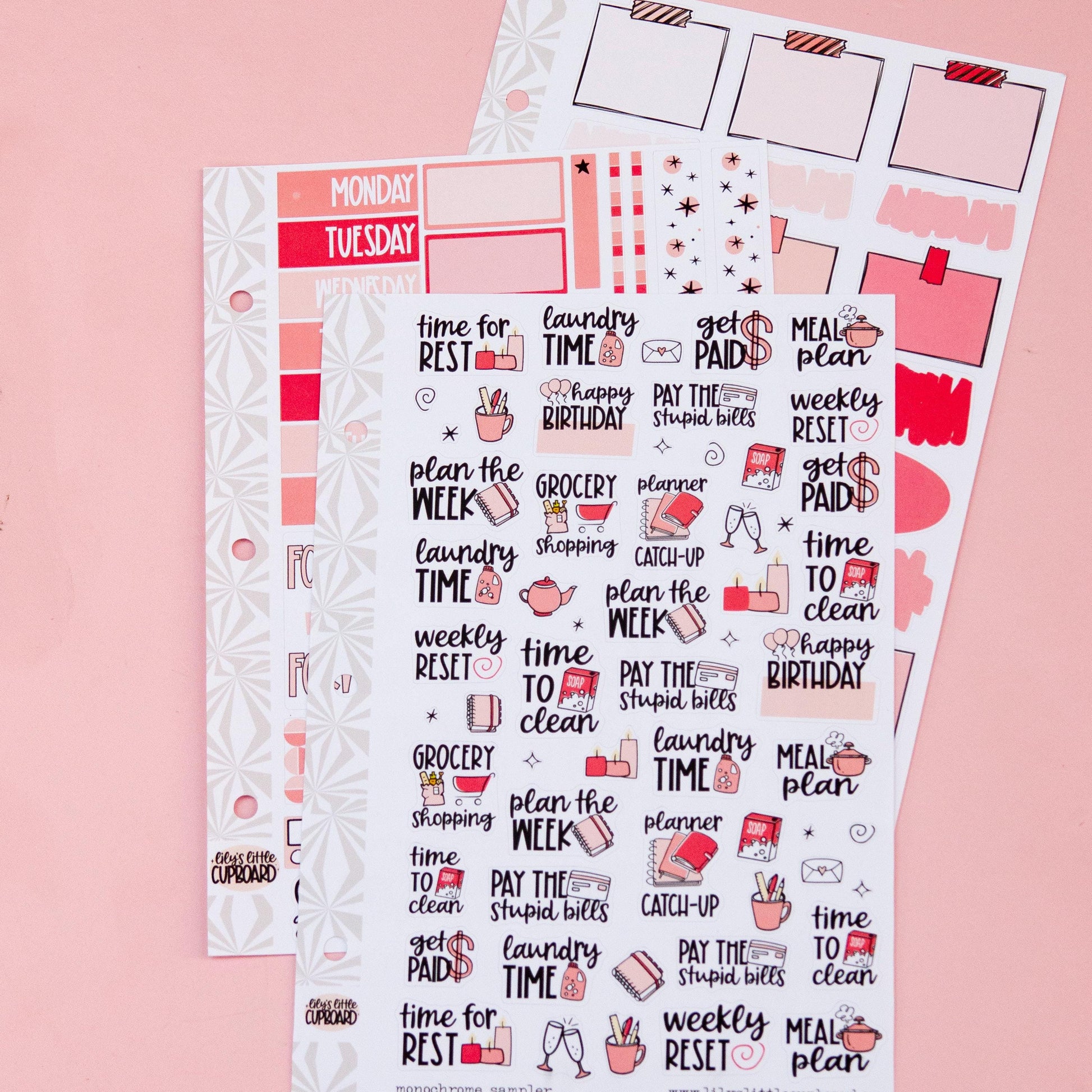 Monochrome Collection Pretty Pinks | Functional Planner Stickers | Typography Scripts Planner Stickers | Weekly Planner Sticker Kit