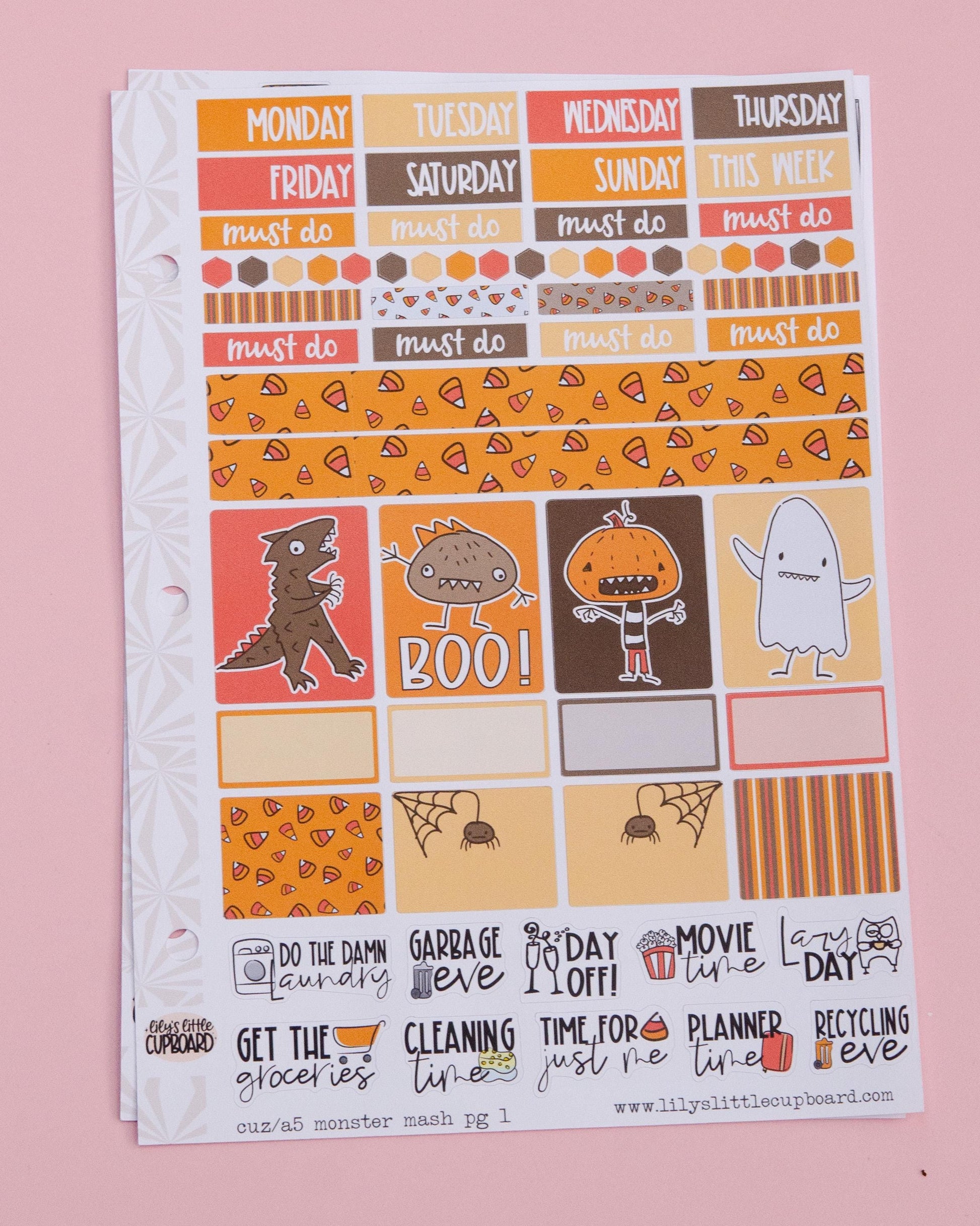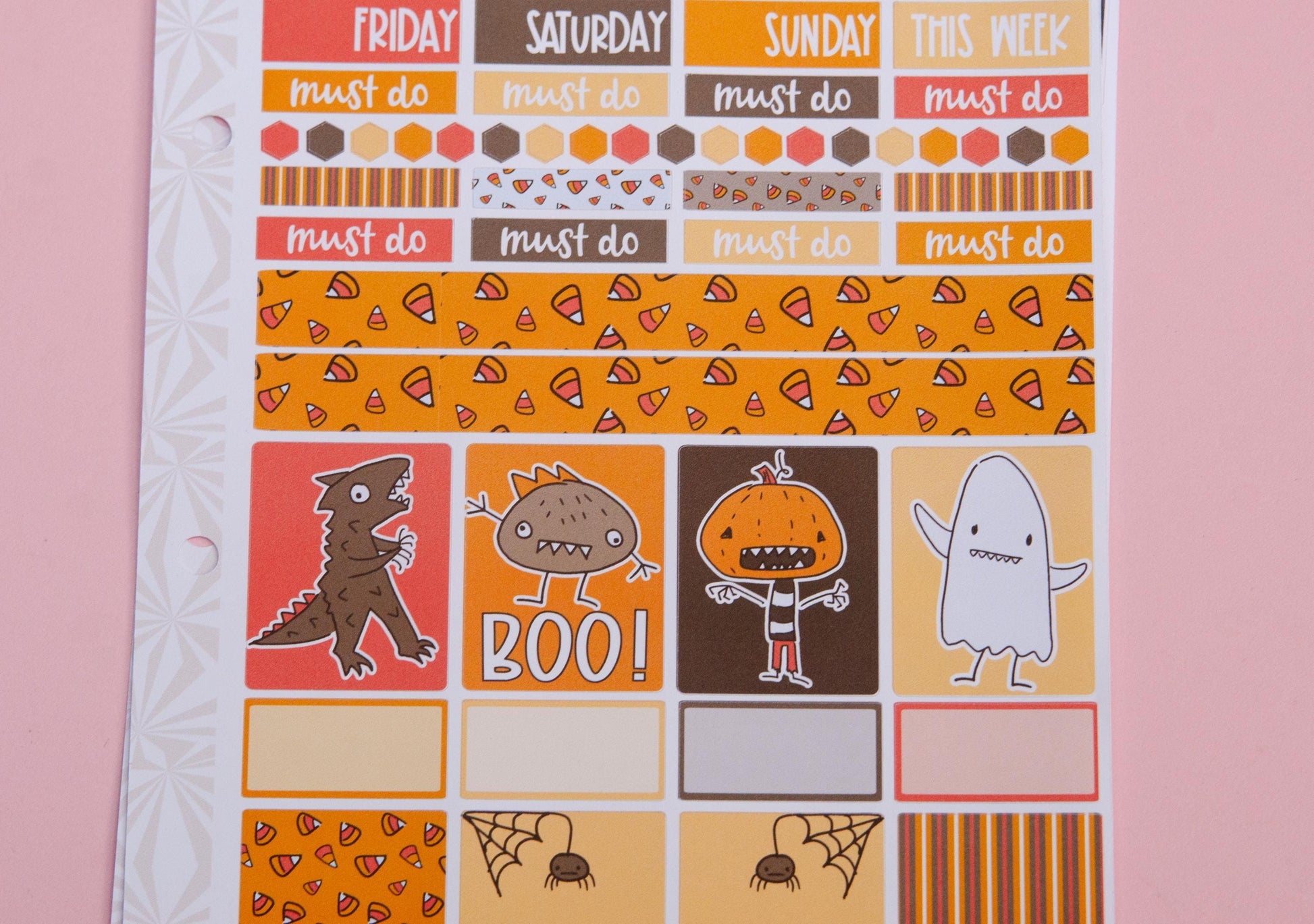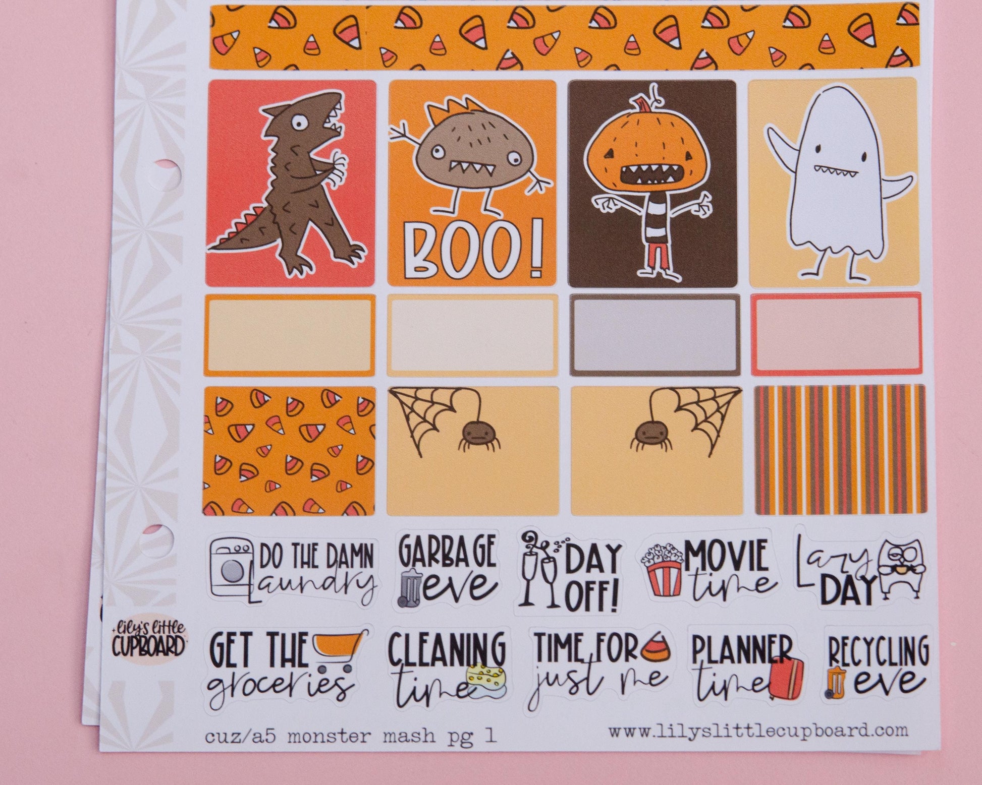 Monster Mash Halloween Hobonichi Cousin-A5 Weekly Sticker Kit | Cute Halloween Sticker Kit | A5 Weekly Planner Sticker Kit