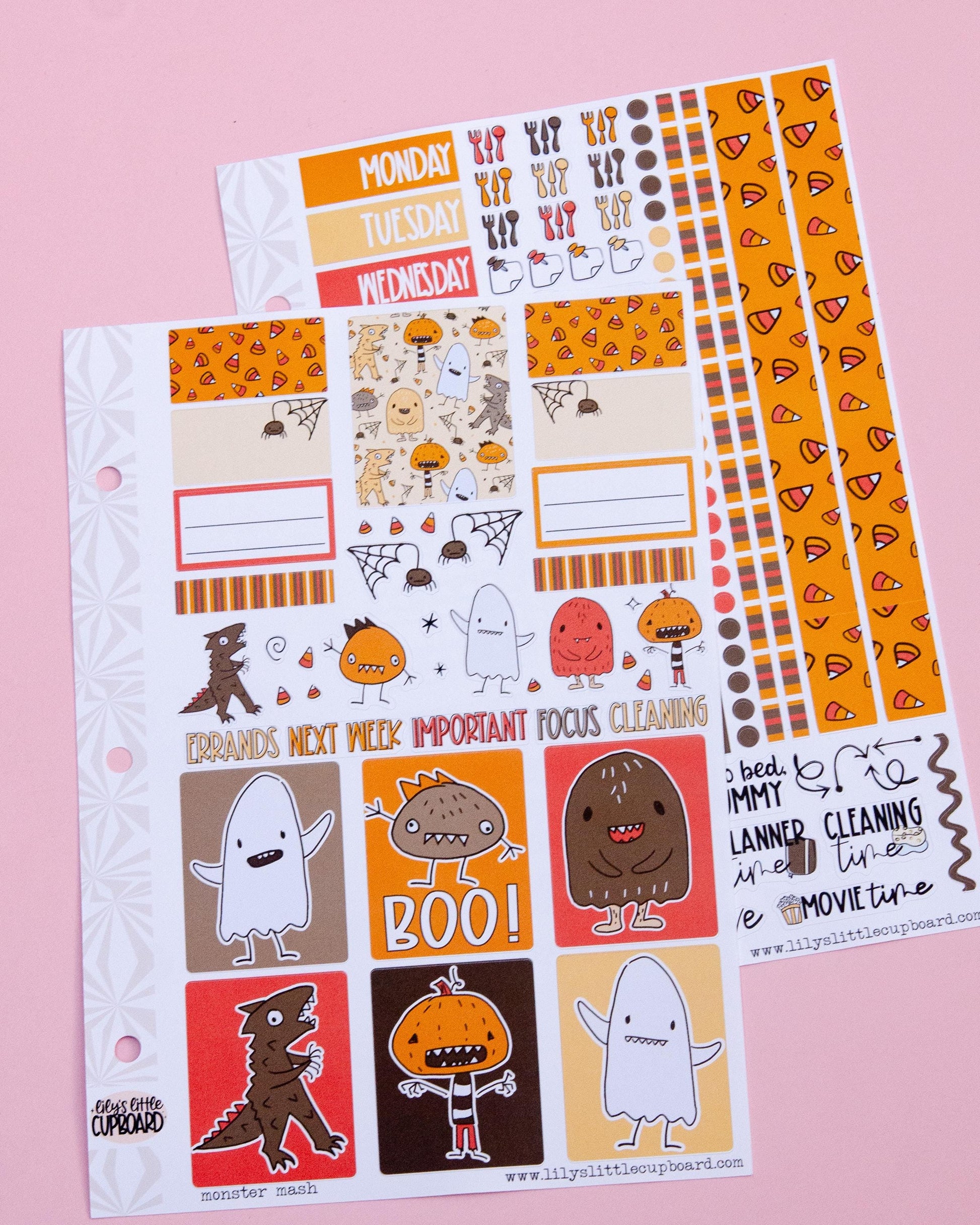 Monster Mash Vertical Weekly Sticker Kit | Halloween Weekly Planner Sticker Kit | A la Carte Mini Kits | Spooky Weekly Planner Kit