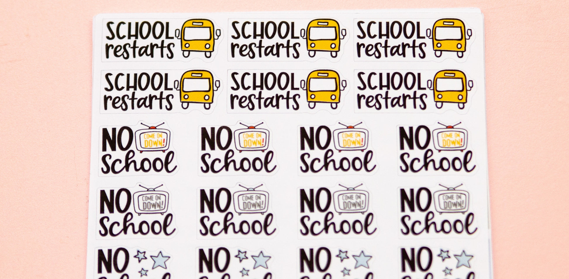 No School Today Planner Stickers | School Restarts Planner Stickers | Organizing School Stickers | Back to School Scripts | Routine Planner