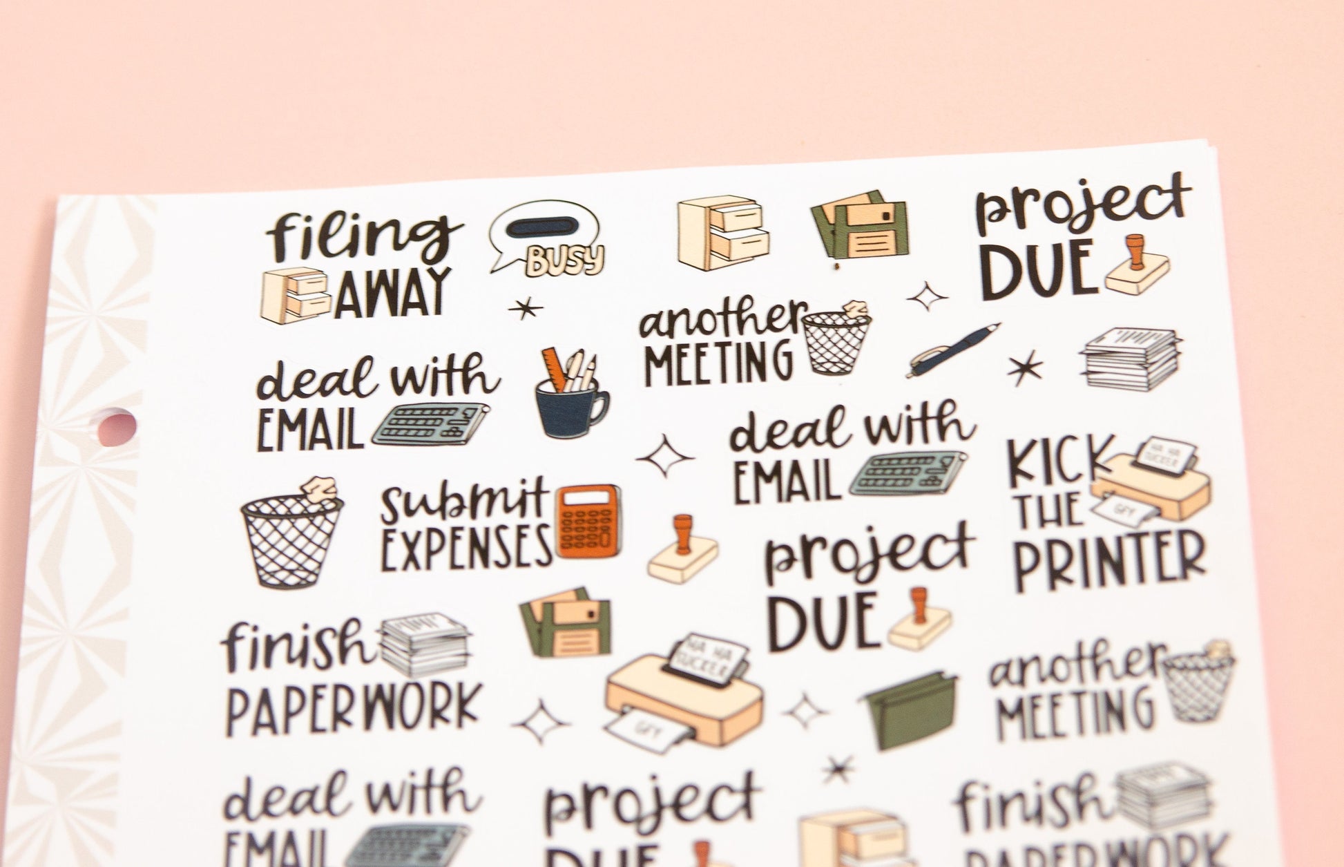 Office Life Sampler Planner Stickers | Weekly Work Script Stickers | Cute Work Stickers | Functional Office Deco Stickers