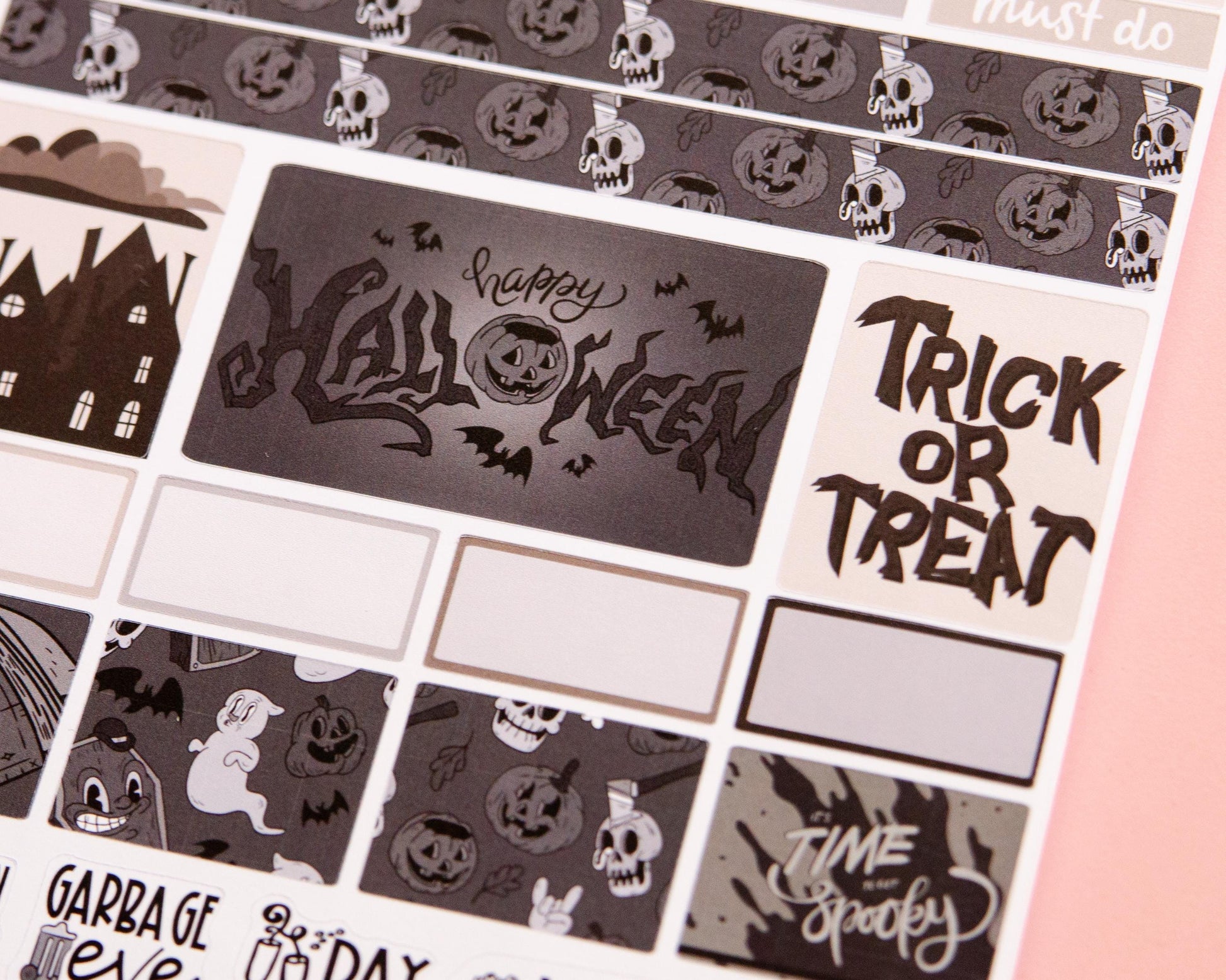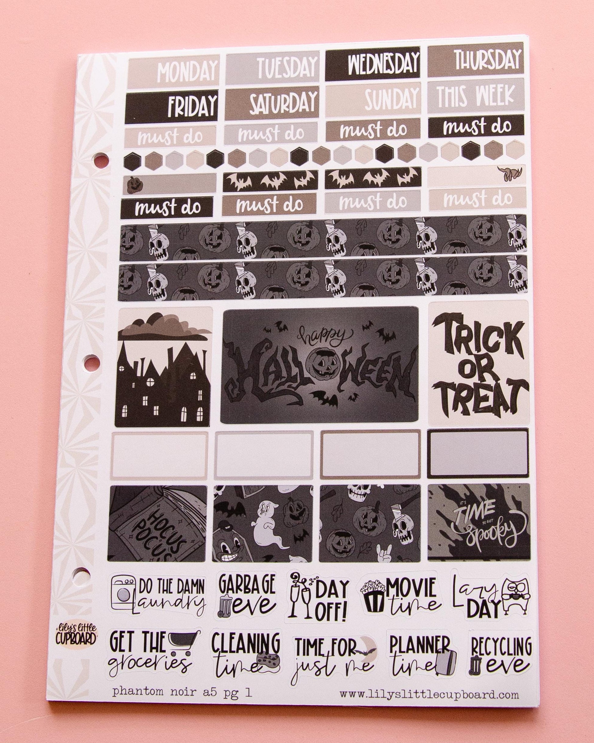 Phantom Noir Halloween Planner Stickers: Hobonichi Cousin A5 Weekly Kit