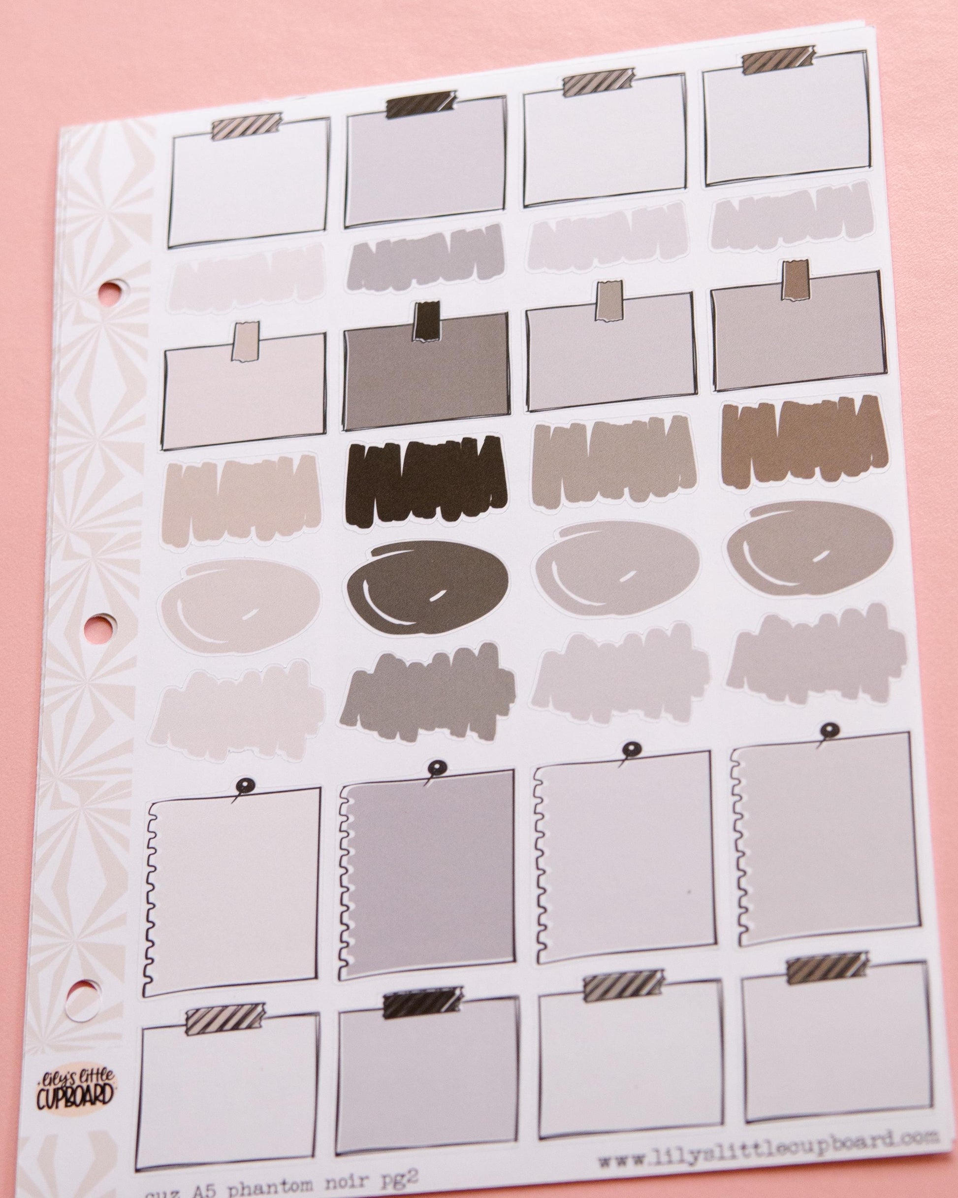 A5, Hobonichi Cousin, and other planners who have those 1.25" width columns, this sticker kit is for you. All box stickers in this kit are 1.25" wide with varying heights. The script stickers vary, but are designed to fit within a 1.25" column. the washi strips are 5.25 inches long by .5 inch high. This is a two-page kit but it's also available a la carte