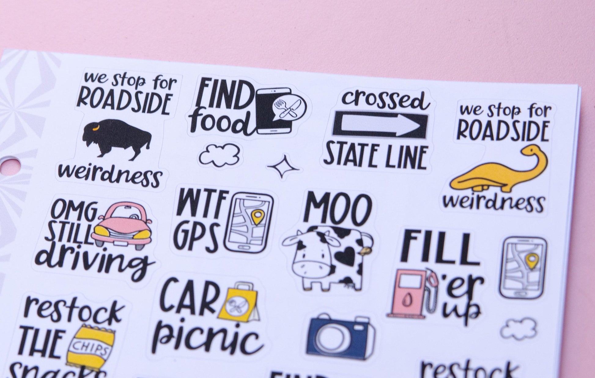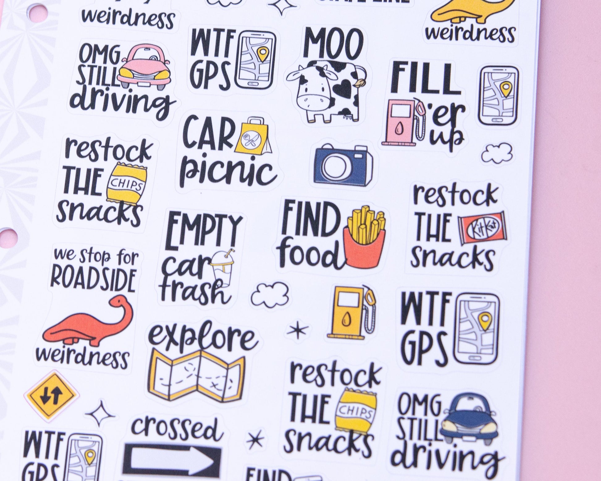 Stickers all about the driving time! While it's meant for road trips, just look how cute it is. You can use most of that stuff any time.