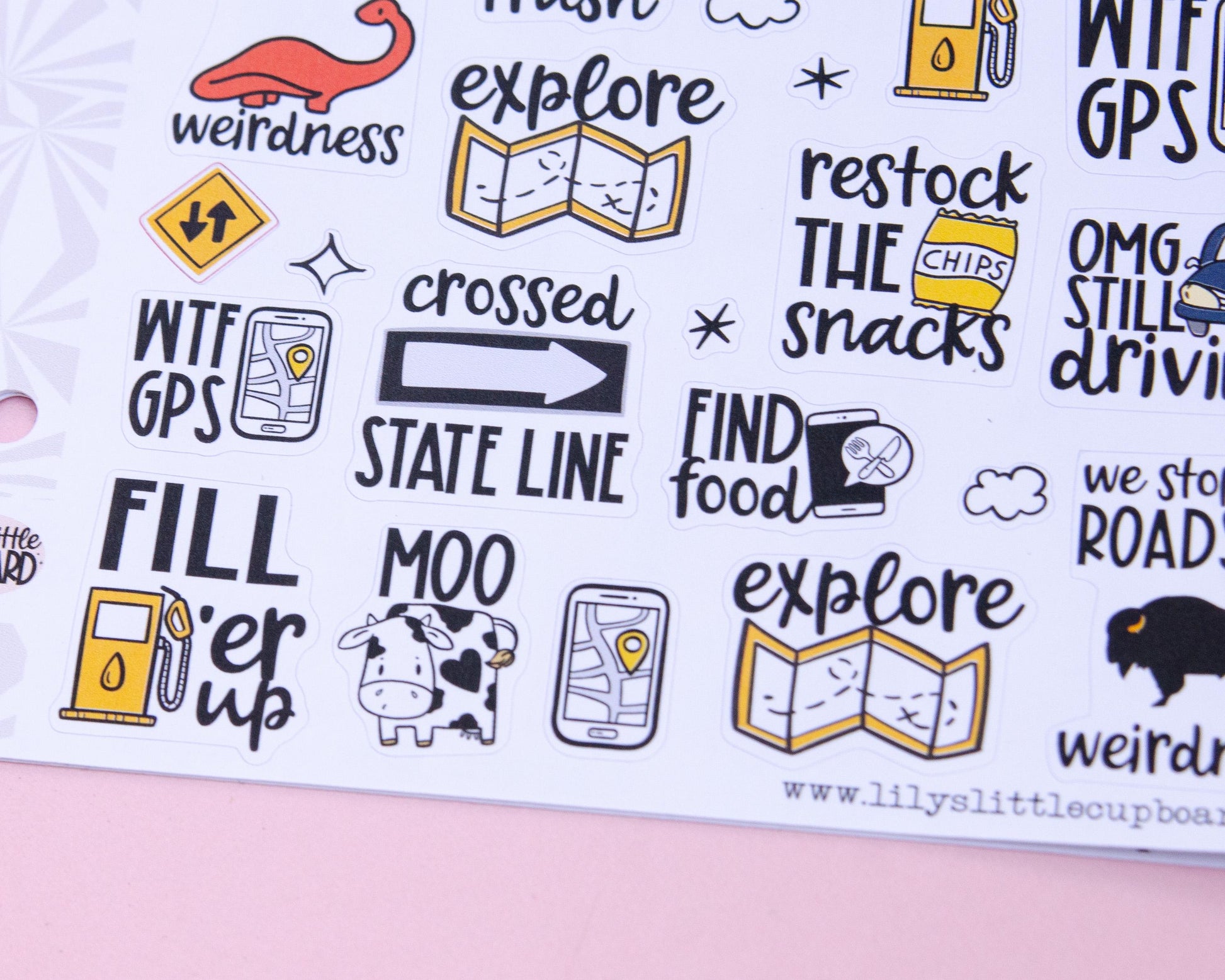 Road Trip Sampler Planner Stickers | Travel Planning | Vacation Stickers | Driving Stickers | Functional Deco | Script | Icon | Typography