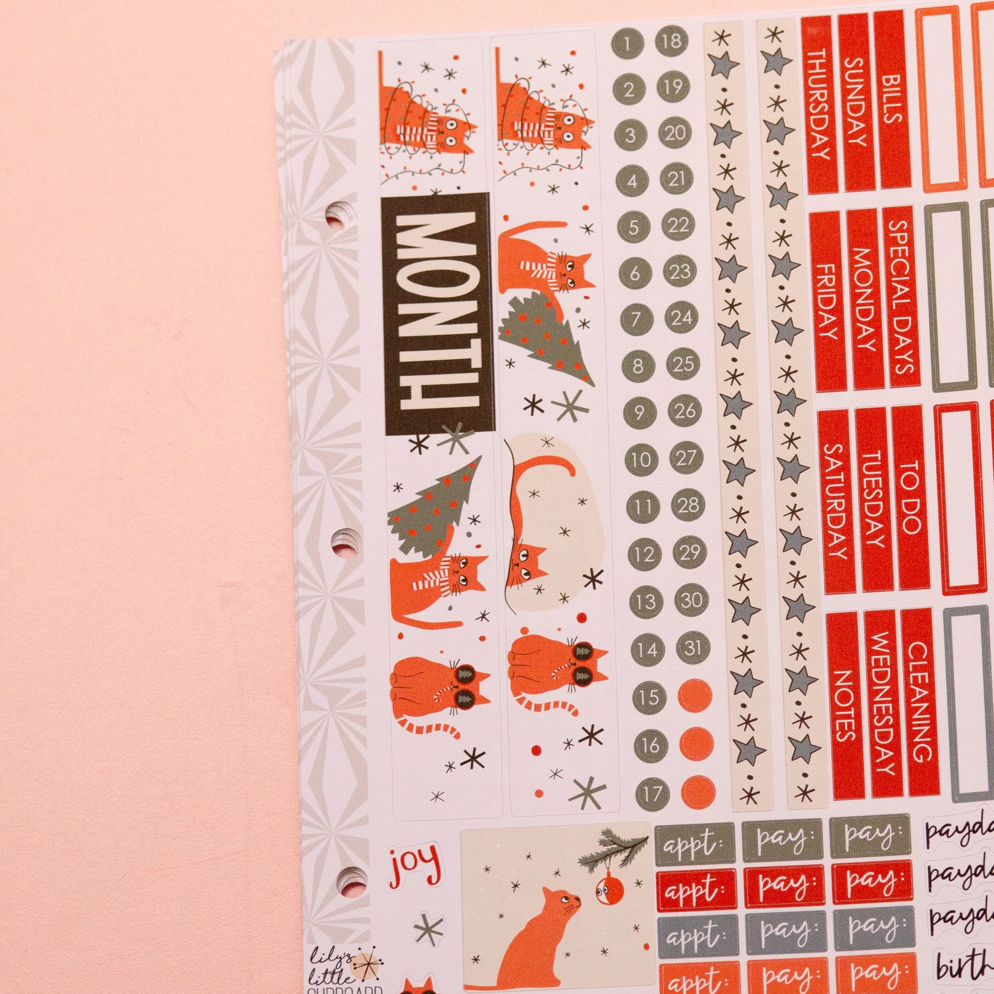 Simple Monthly Kit in Purrfectly Chaotic Christmas | Choose Your Month Sticker Kit | Monthly Spread Planner | Monthly Planner Sticker Kits