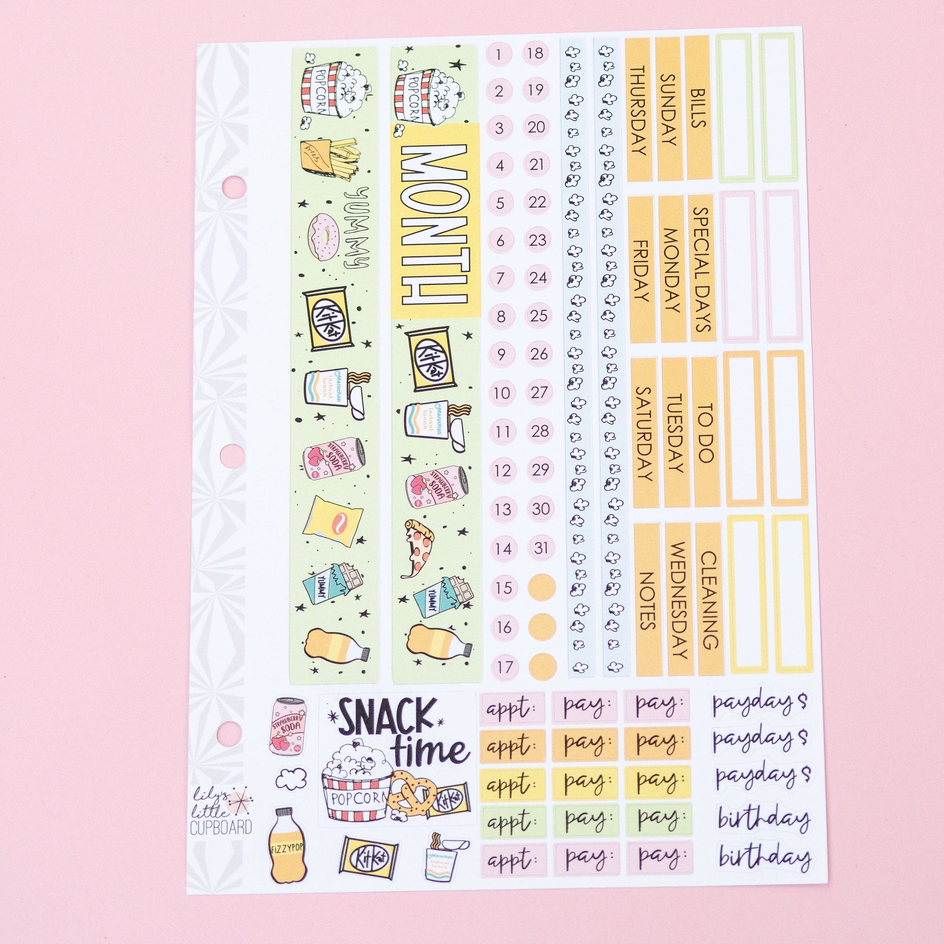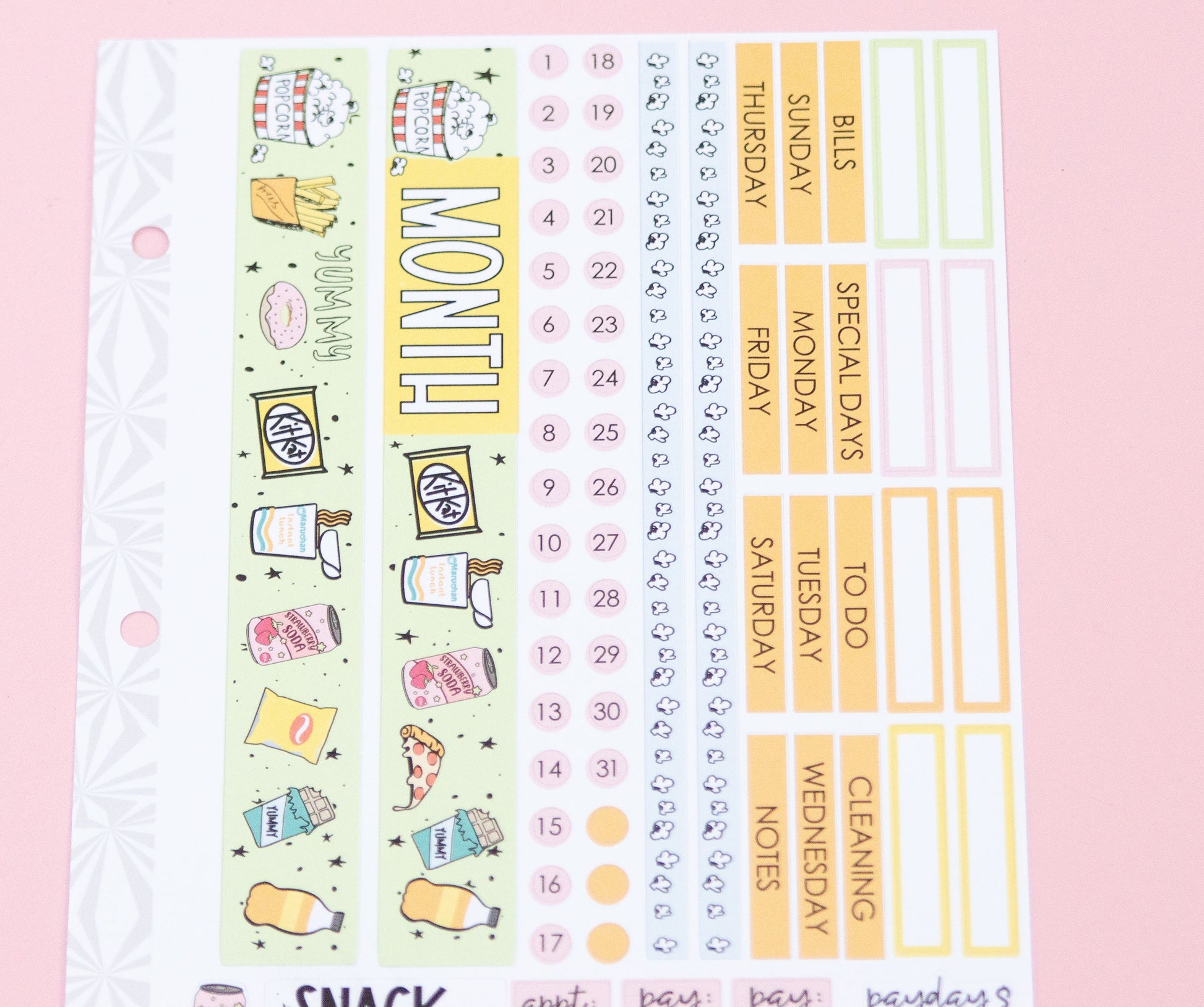 Simple Monthly Kit in Snack Time | Choose Your Month Sticker Kit | Monthly Spread Planner Kits | Monthly Planner Sticker Kits