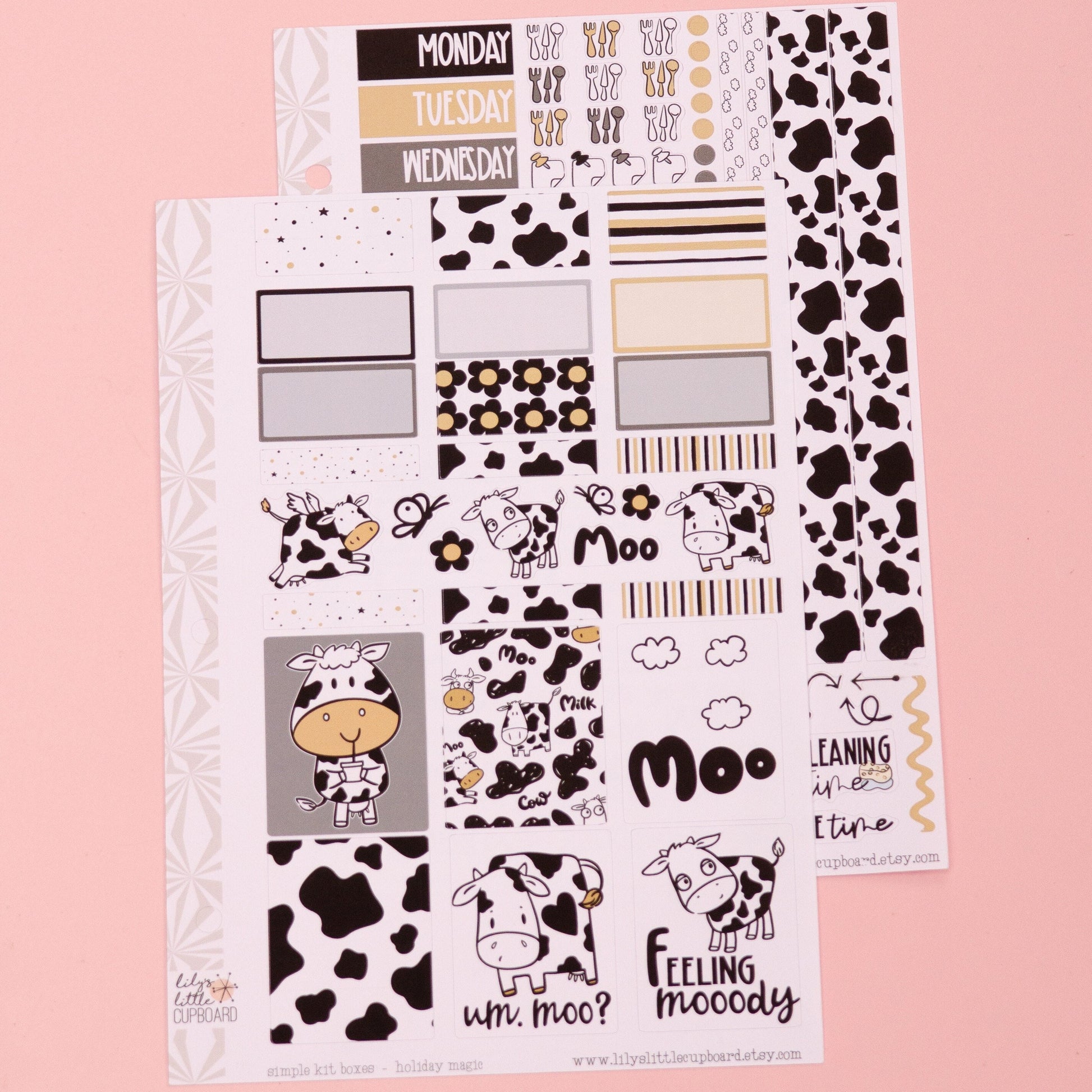 Simple Weekly Kit in Moo Cow | Cow Weekly Planner Sticker Kit | Funny Animal Sticker Set | A la Carte s | Spring