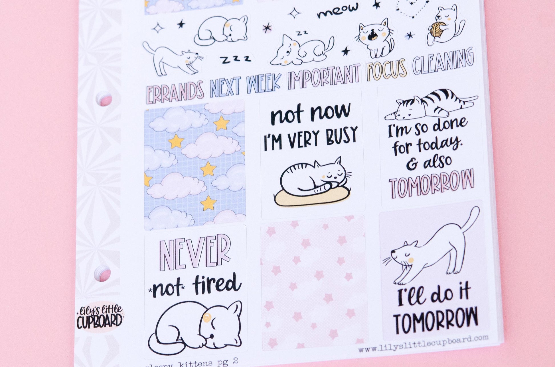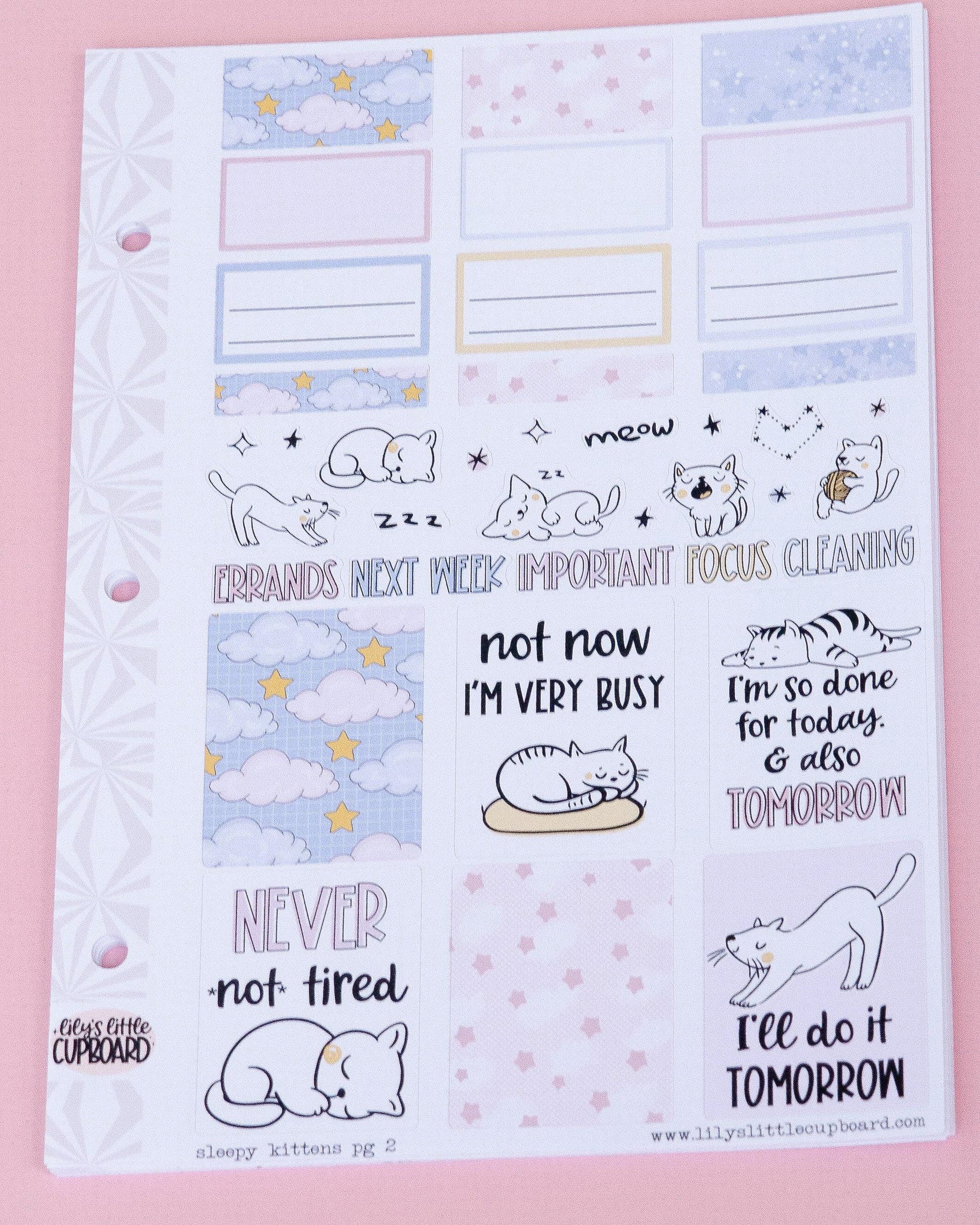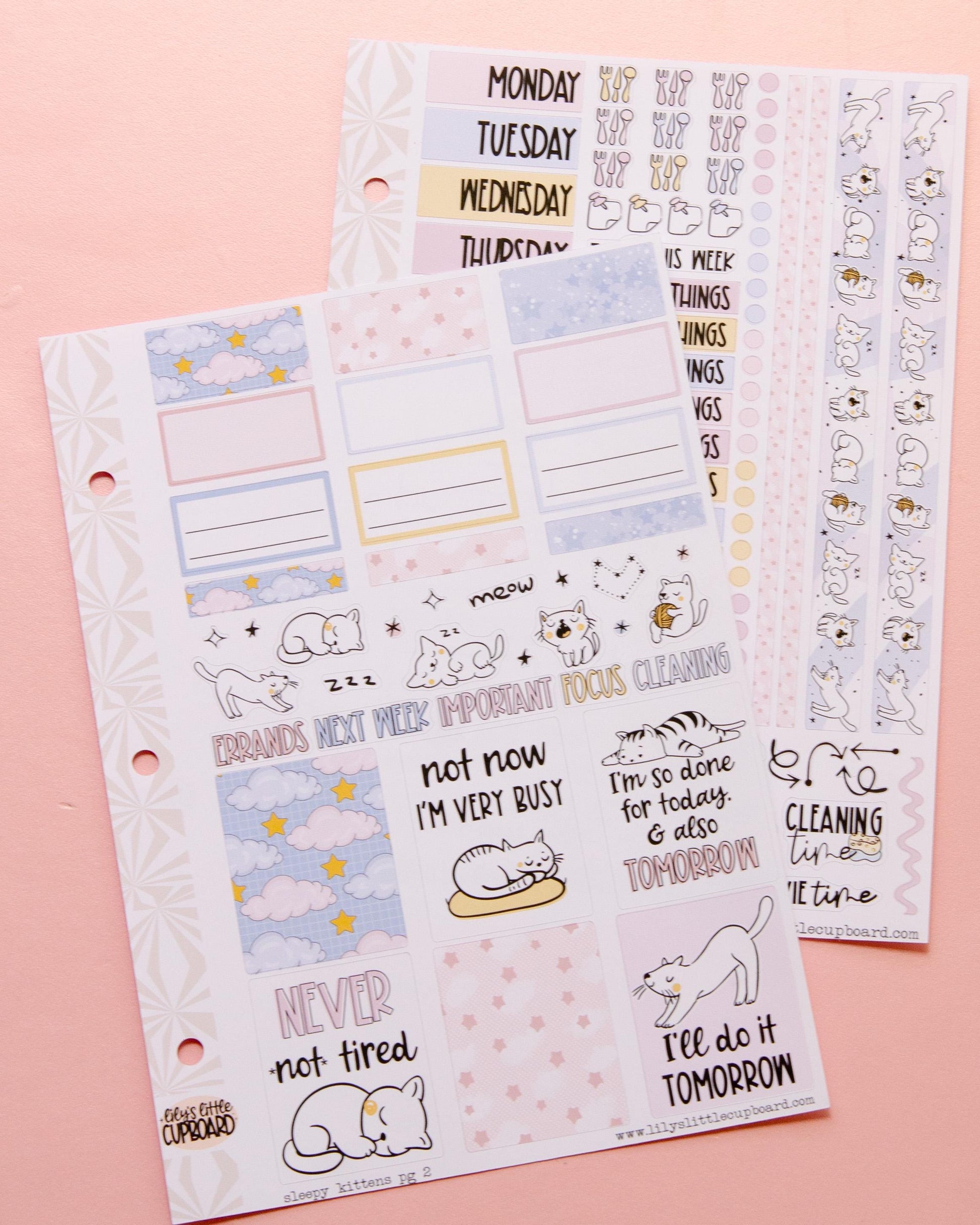 Sleepy Kitties | Weekly Sticker Kit | Anytime Planner Kit | Cozy Kittens Vertical Sticker Kit | Kitty Cat Sticker Kit A la Carte Planner Kit