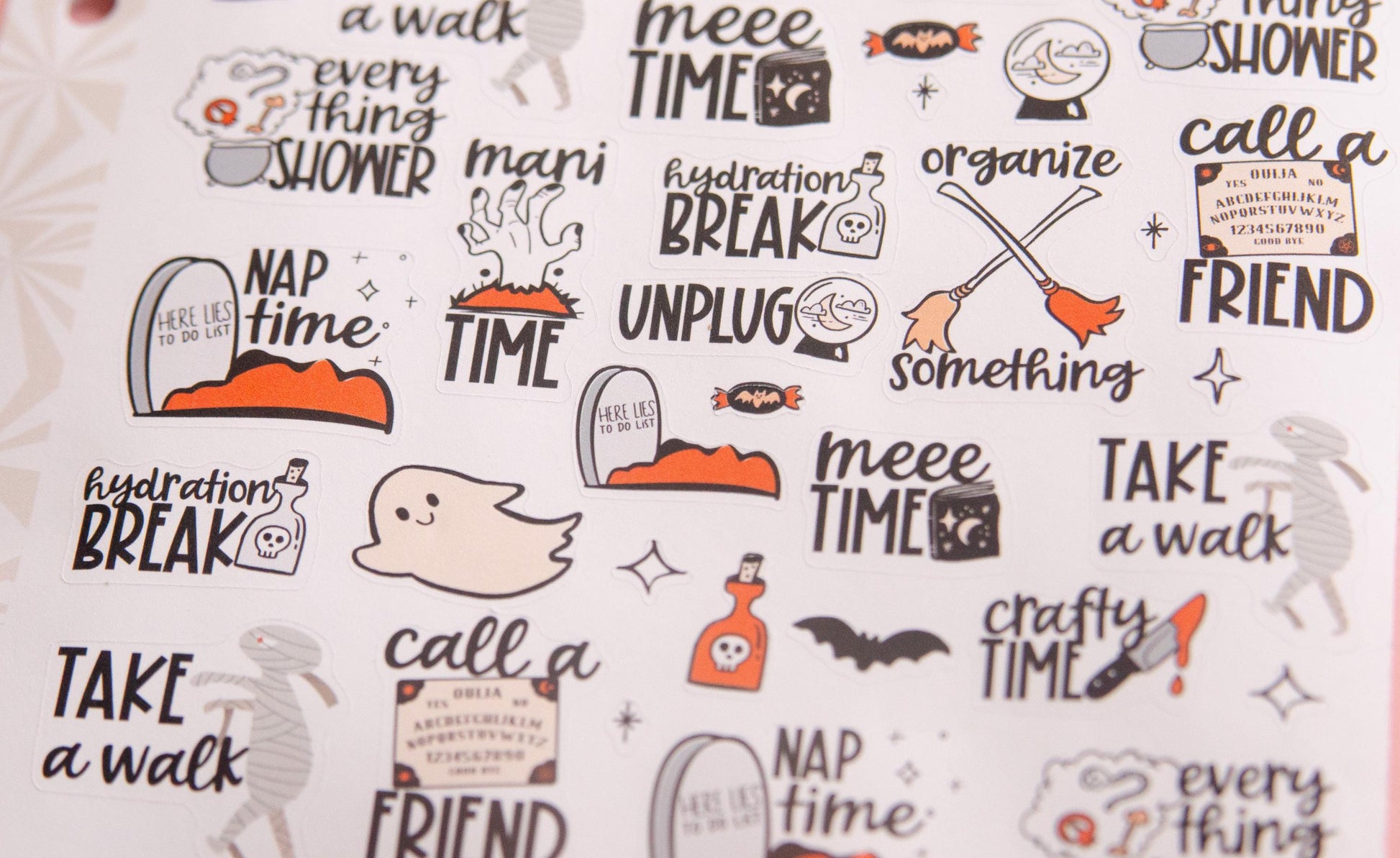 Spooky Self Care Planner Stickers: Halloween Functional Stickers