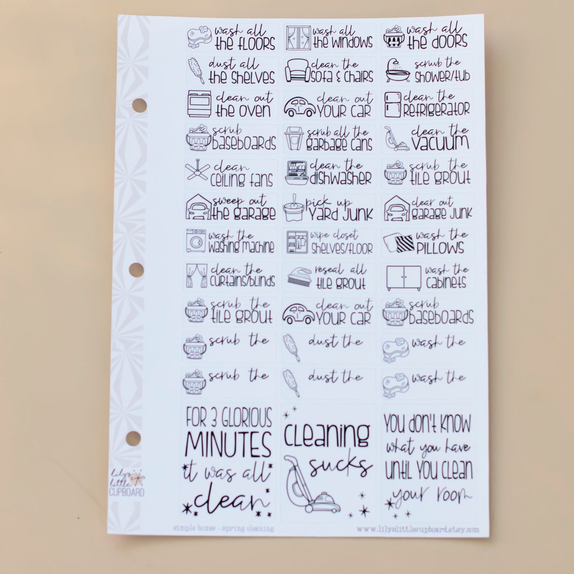 Spring Cleaning Planner Stickers | Deep Cleaning Neutral Planner Stickers | Cleaning Script Stickers | Typography Stickers (A087)