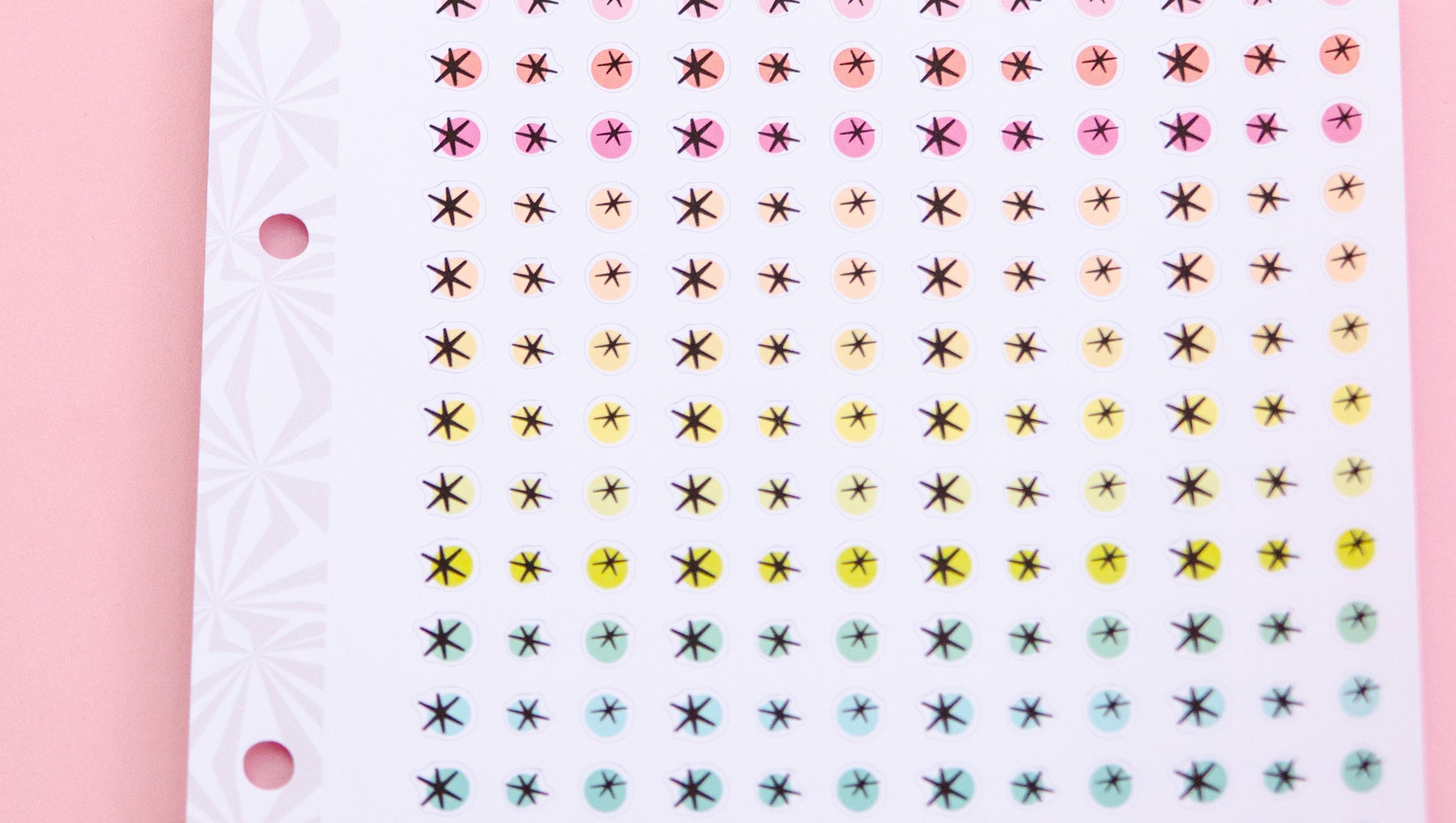 Yep, it's big page full of little dots. But with a fun little start twist. They are small and super functional. Use them as a checklist, to emphasize, or just to decorate. Lots of colors, lots of dots!