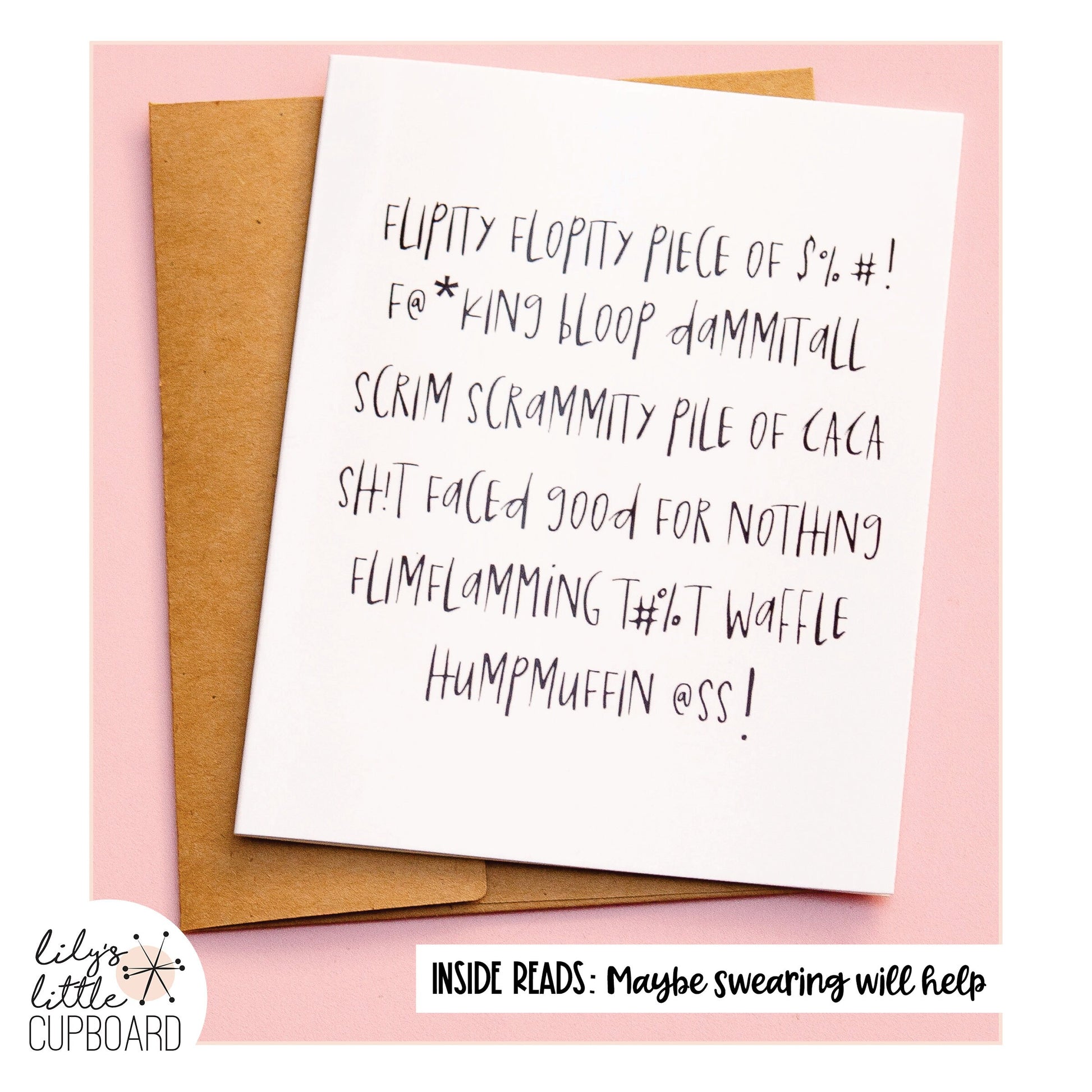 -bunch of nonsense sorta sweary but also censored card to try to put a funny spin on feeling crappy