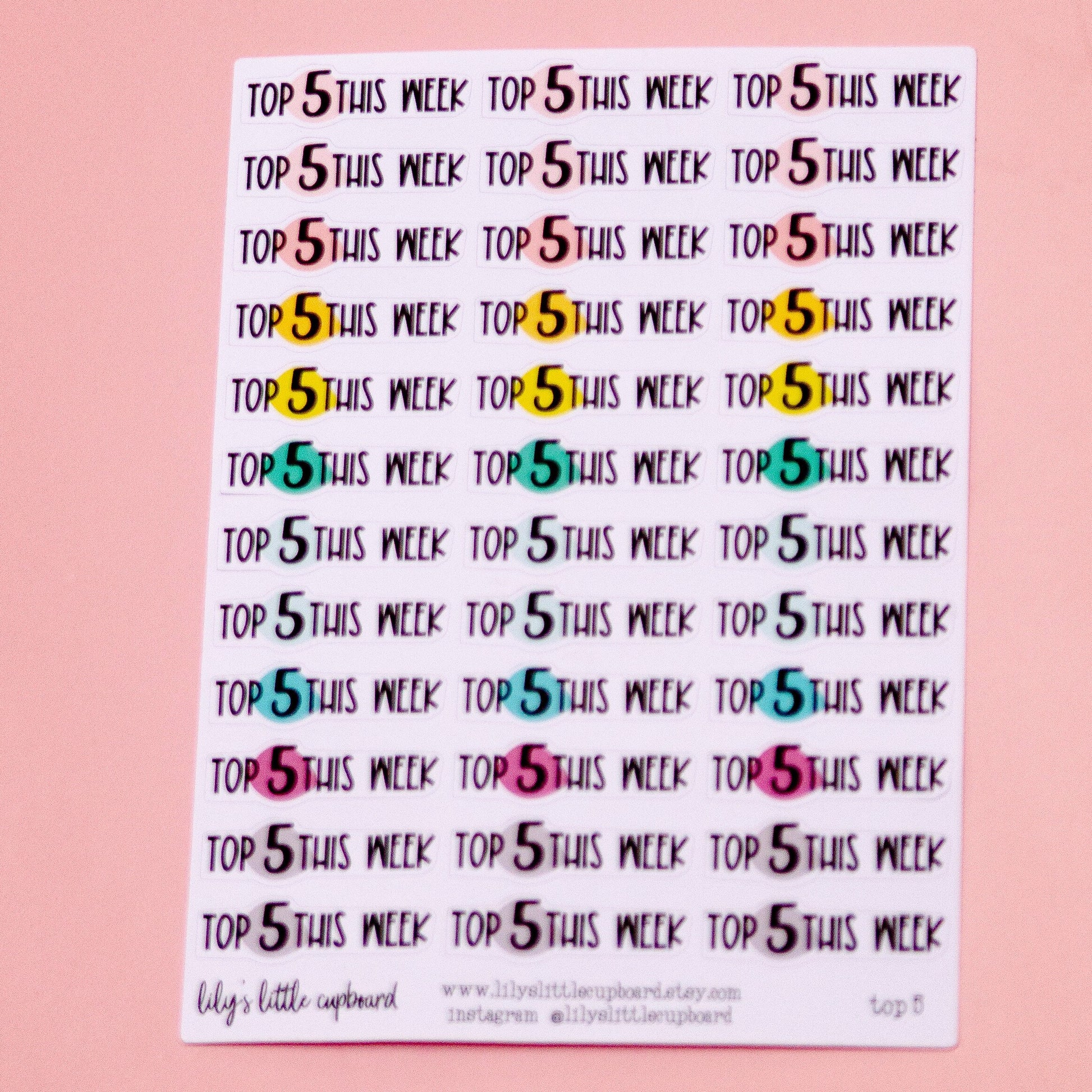 Top 5 This Week Header Stickers | Functional Planner Stickers | Planner Stickers | Lily's Little Lites Stickers (L015)