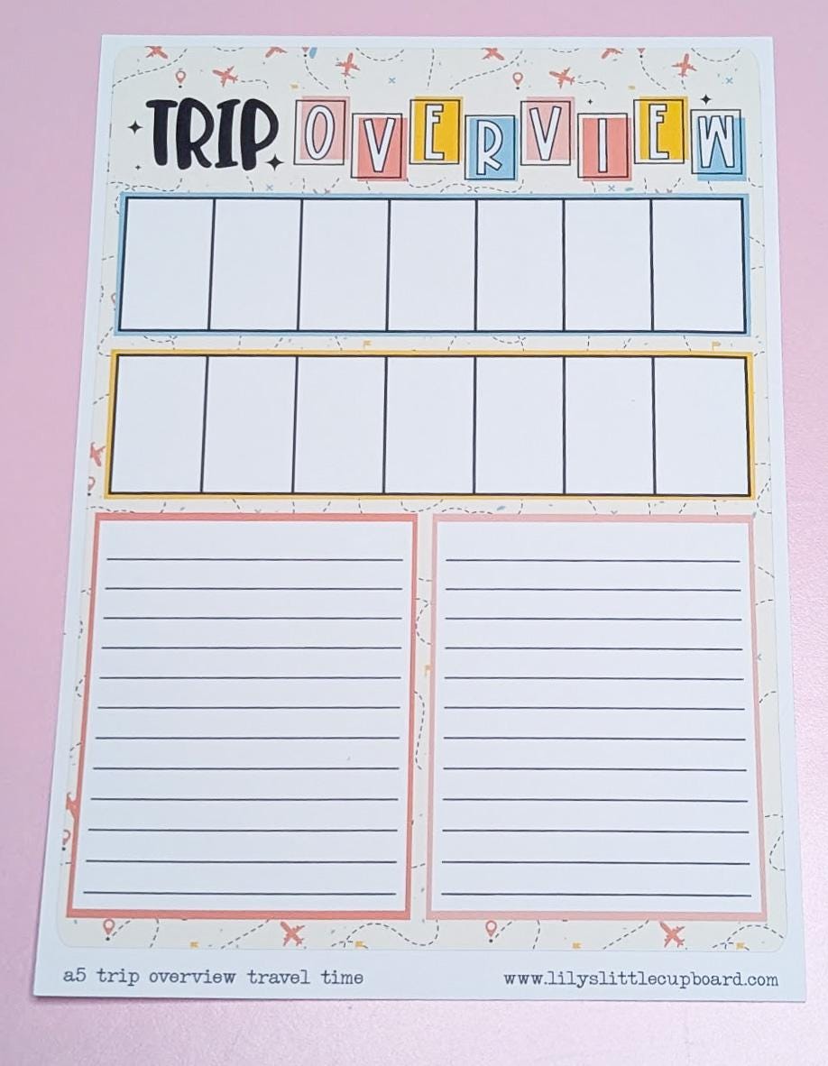 Trip Overview Vacation Overview Travel Time | Full Page Notes Page Sticker | Travel | A5 Full Page Sticker | Dashboard Sticker