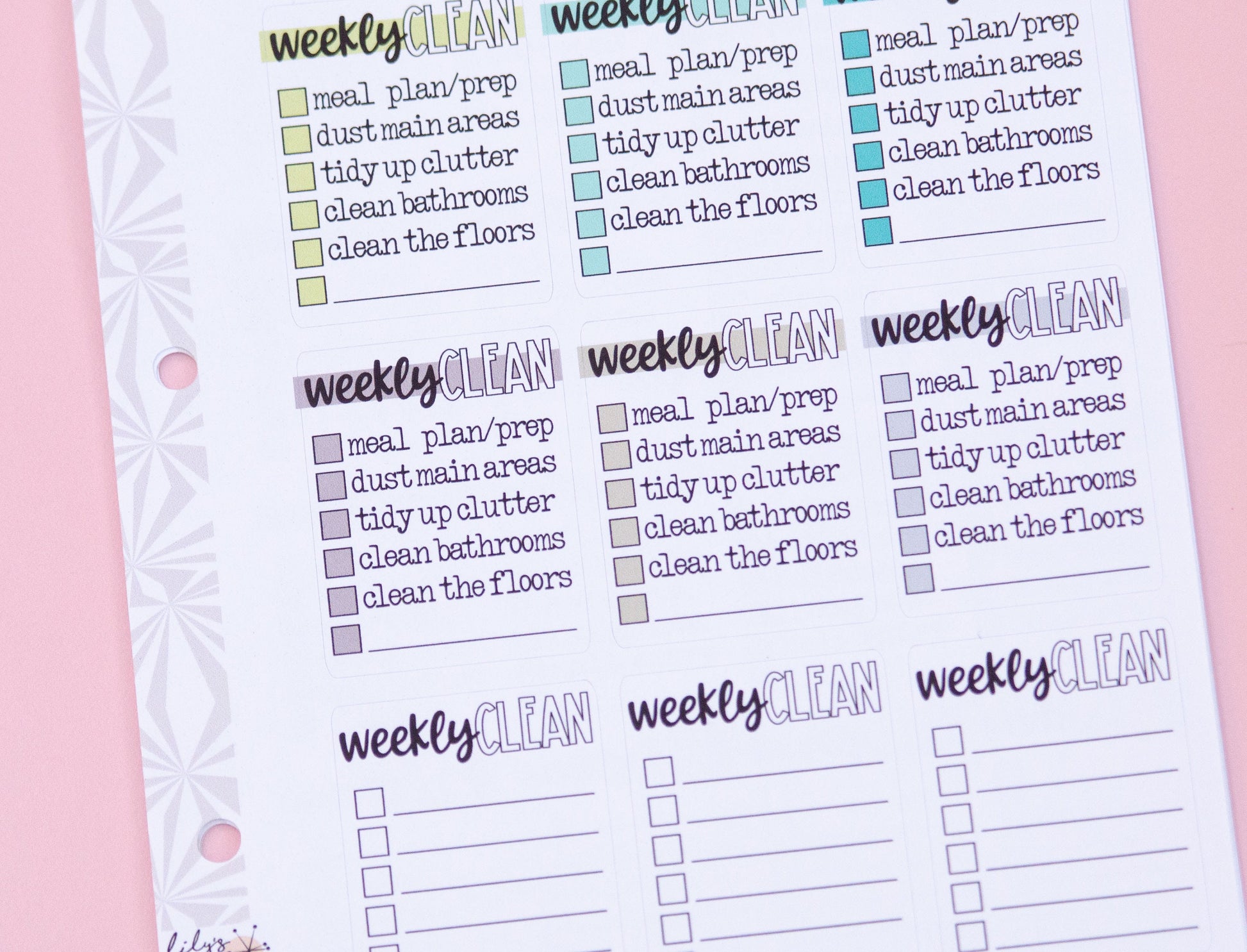 Weekly Cleaning by the Task Full Box Checklist Stickers | Zone Cleaning Stickers | Checklist Planner Stickers | Functional Stickers