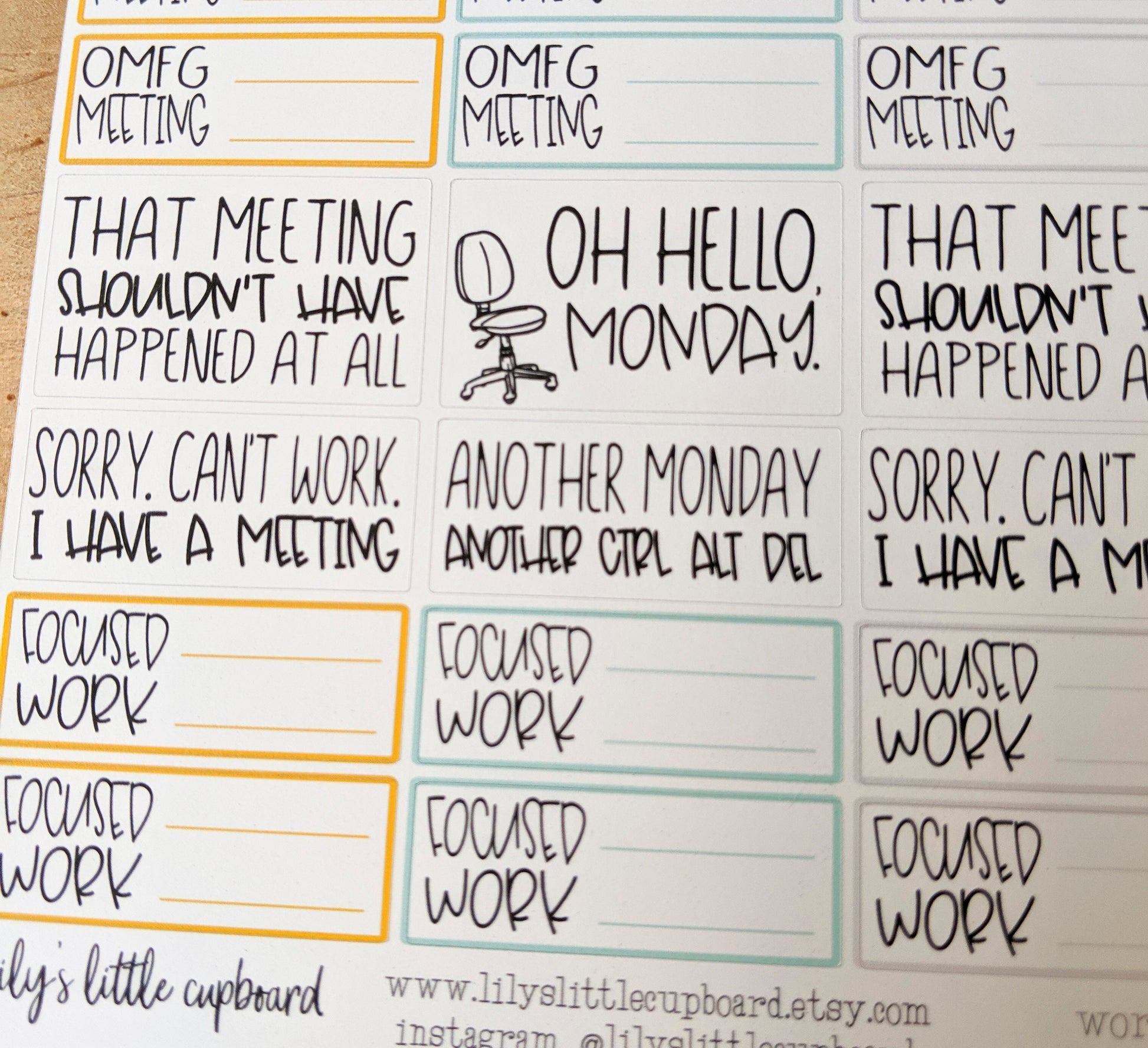 Work Day Planner Stickers | Office Life Stickers | Work Stickers | Work Planner Stickers | Meetings Planner Stickers | Quote Stickers